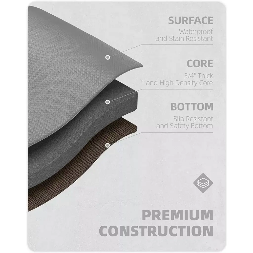 Brighten up your cooking experience with this superior kitchen mat. Colors easily complement already existing home décor for simple and chic design. Anti-fatigue mats are made of polyvinyl foam for better posture and long-lasting comfort while you perform all of your daily kitchen tasks. Non-slip surface and rubber skid-resistant backing help to keep the mat firmly in place while you work. Great for use in the kitchen sink, stove, or even laundry area.
