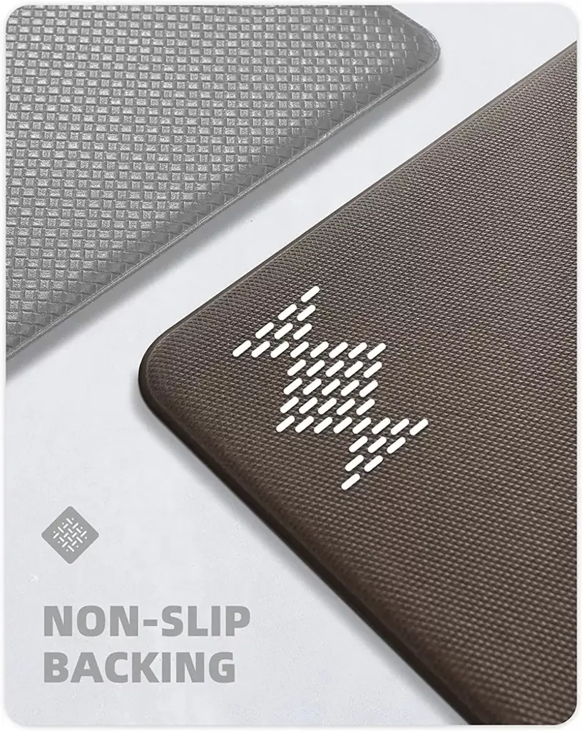 Brighten up your cooking experience with this superior kitchen mat. Colors easily complement already existing home décor for simple and chic design. Anti-fatigue mats are made of polyvinyl foam for better posture and long-lasting comfort while you perform all of your daily kitchen tasks. Non-slip surface and rubber skid-resistant backing help to keep the mat firmly in place while you work. Great for use in the kitchen sink, stove, or even laundry area.