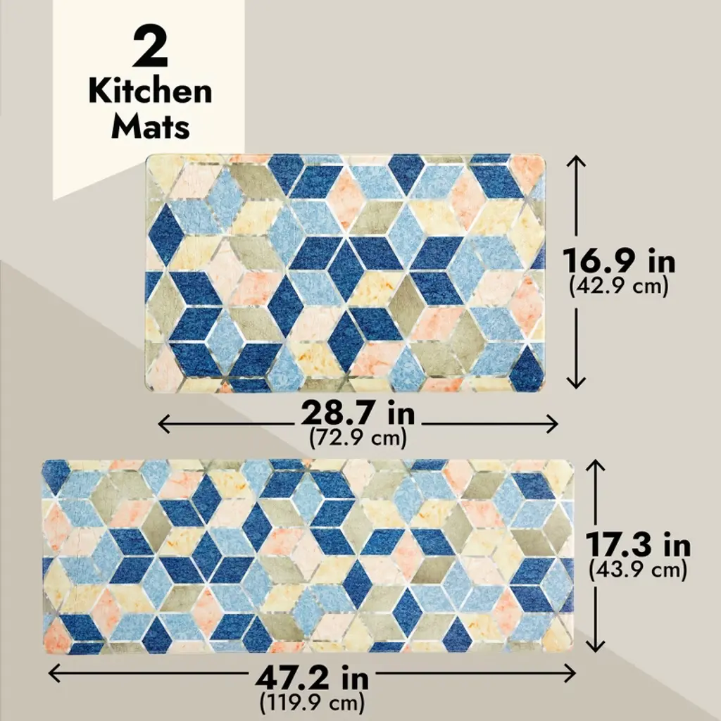 Juvale 2 Piece Set Anti Fatigue Kitchen Floor Mats, Diamond Pattern Comfort Cushioned Standing Rugs Waterproof, 2 Sizes