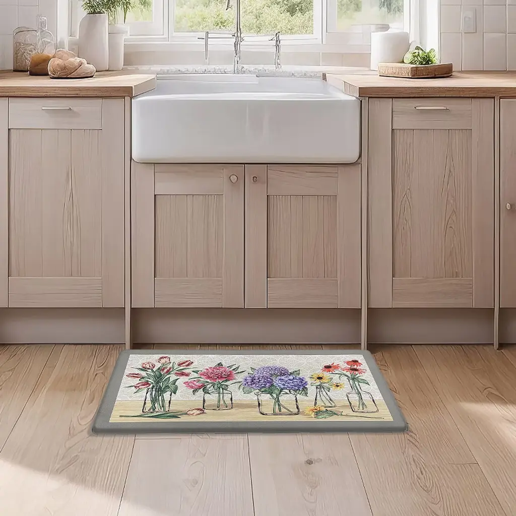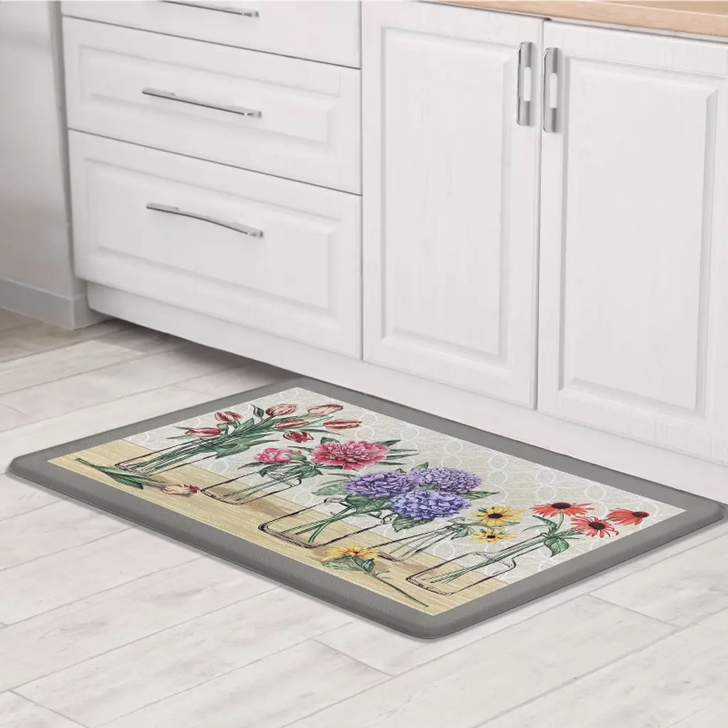 Kate Aurora Anti Fatigue Memory Foam 18" X 30" Garden Blossom Floral Kitchen Floor Mat