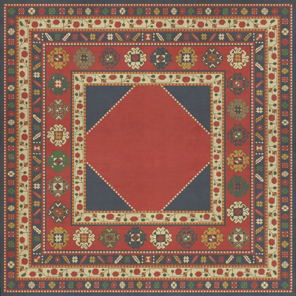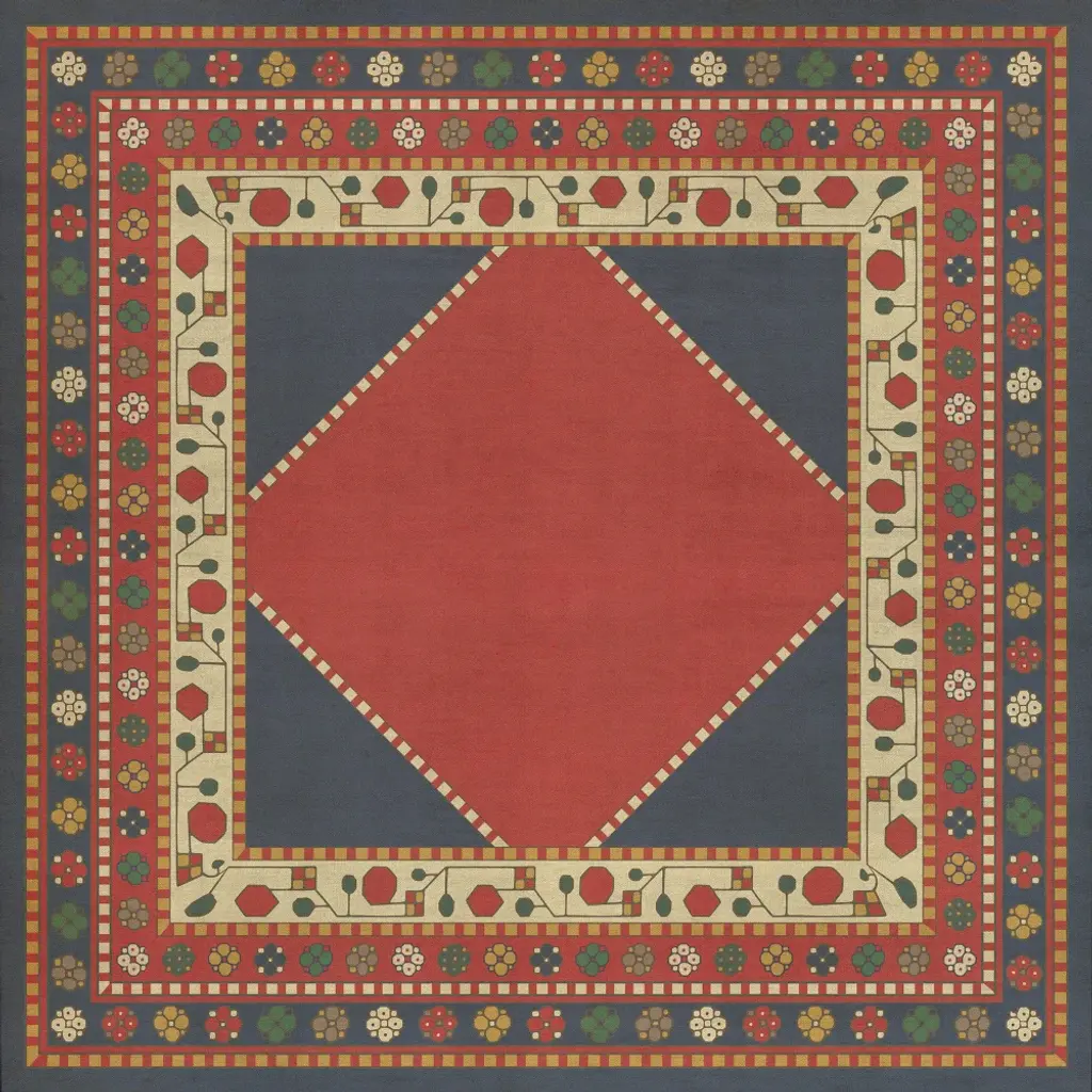 Inspired by old floor mats and vintage linoleum, these vibrant vinyl floor cloths offer warm colors with beautiful aged characteristic. Their worn appeal makes them great in kitchens and baths, while the smooth surface is perfect in an office where rolling chairs can glide. The cloths can be used in controlled outdoor settings such as a screened-in porch or covered lanai. These wonderful designs are printed on durable, certified non-slip, lay-flat vinyl. Due to their mastered printing process please expect some variation in hue and saturation. With a wide range of color combinations and sizes to choose from, enjoy picking your favorites to dress up your floor.