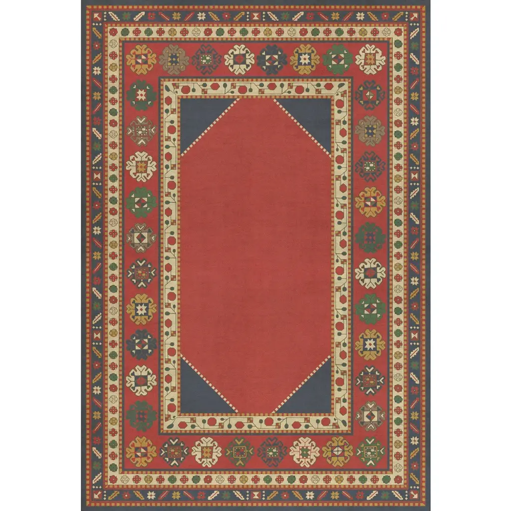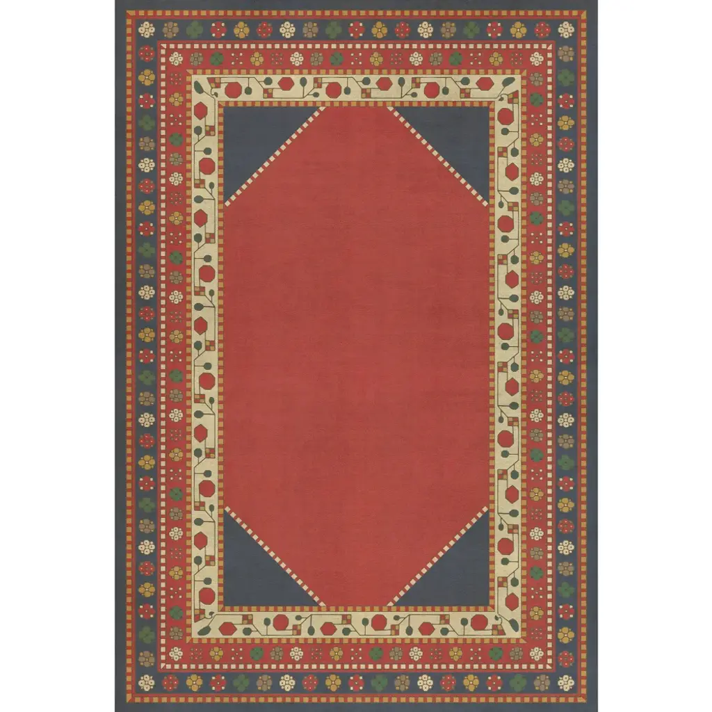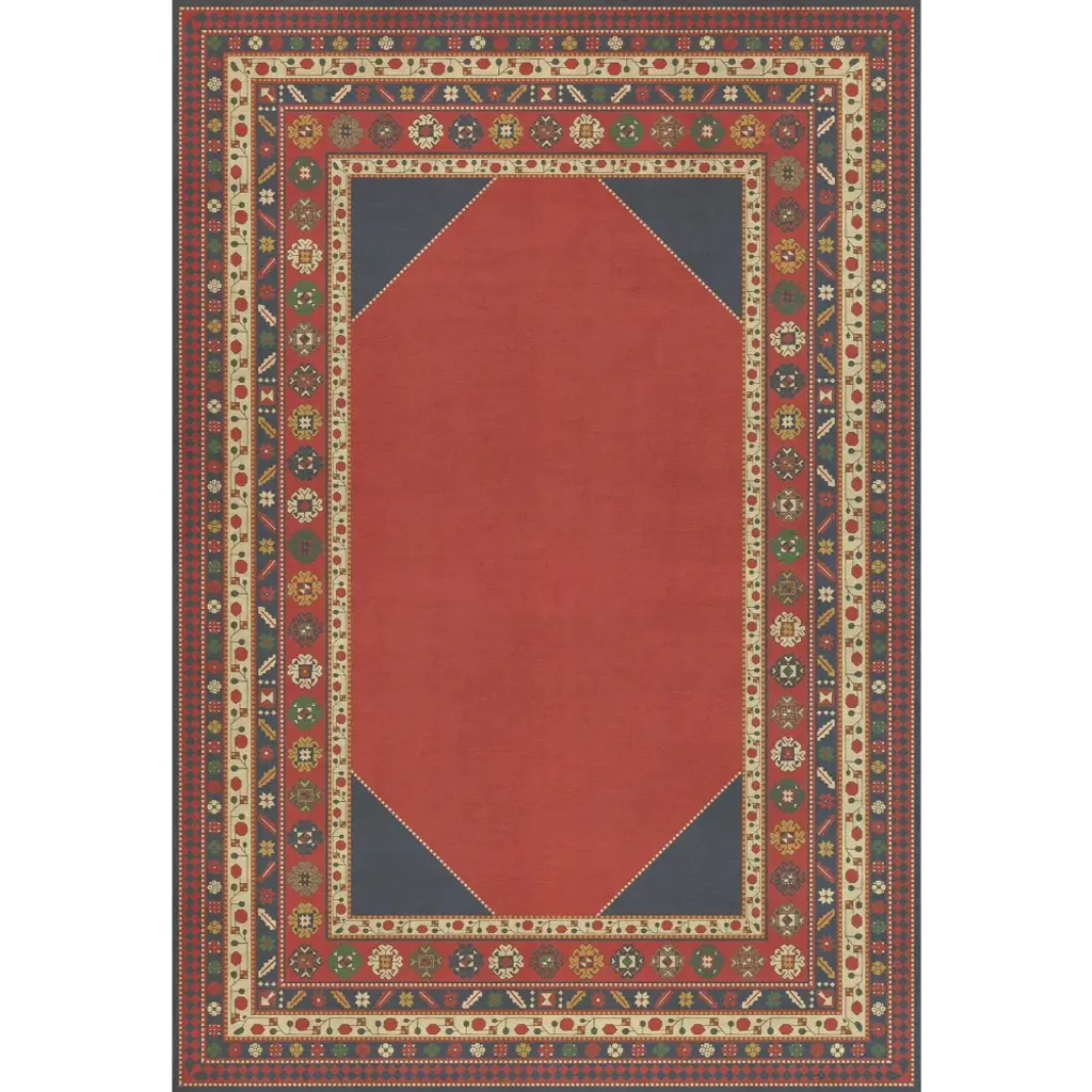 Inspired by old floor mats and vintage linoleum, these vibrant vinyl floor cloths offer warm colors with beautiful aged characteristic. Their worn appeal makes them great in kitchens and baths, while the smooth surface is perfect in an office where rolling chairs can glide. The cloths can be used in controlled outdoor settings such as a screened-in porch or covered lanai. These wonderful designs are printed on durable, certified non-slip, lay-flat vinyl. Due to their mastered printing process please expect some variation in hue and saturation. With a wide range of color combinations and sizes to choose from, enjoy picking your favorites to dress up your floor.