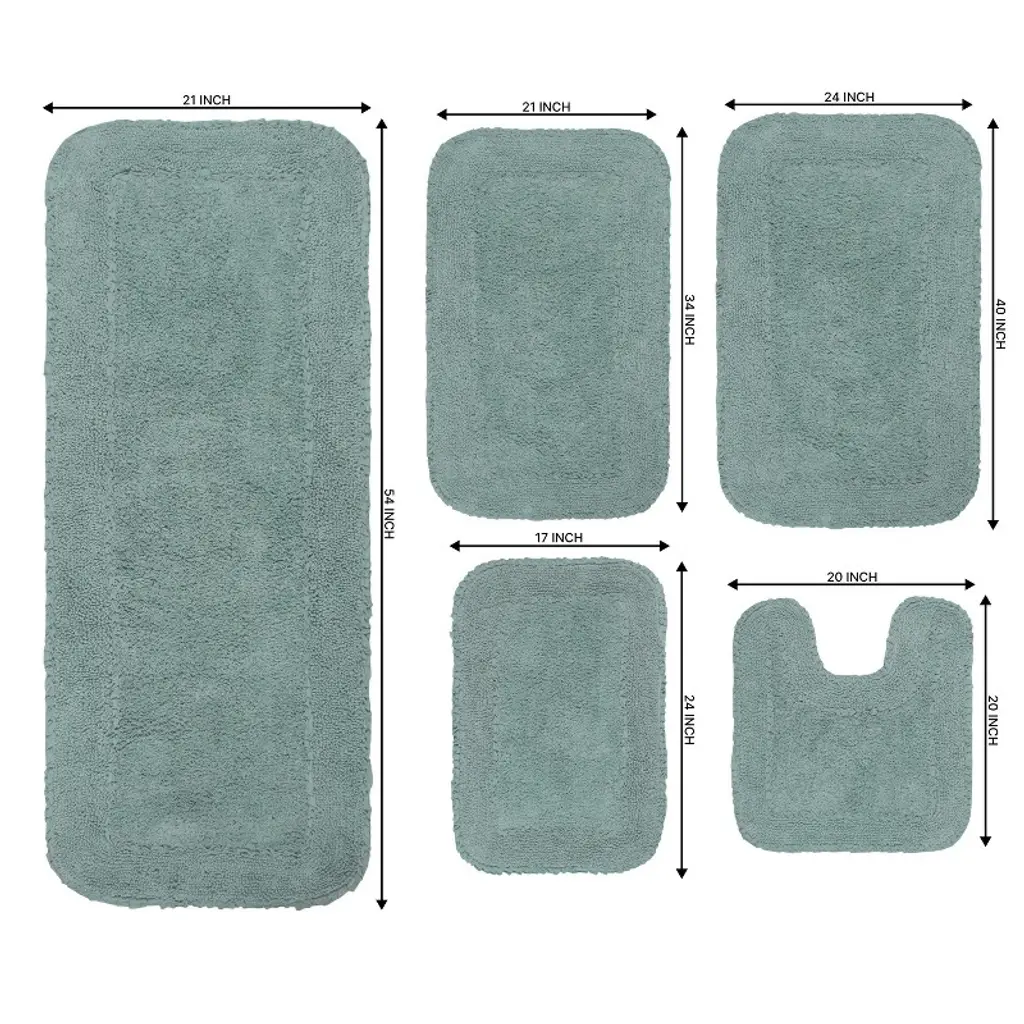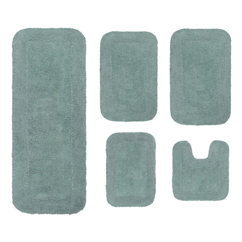 Radiant Bathroom Rugs Set, Washable Rug, Extra Soft And Absorbent Bath Rug, Bath Mat Set, Bath Floor Mat Non-slip, 5 Pcs Set With Contour, Blue