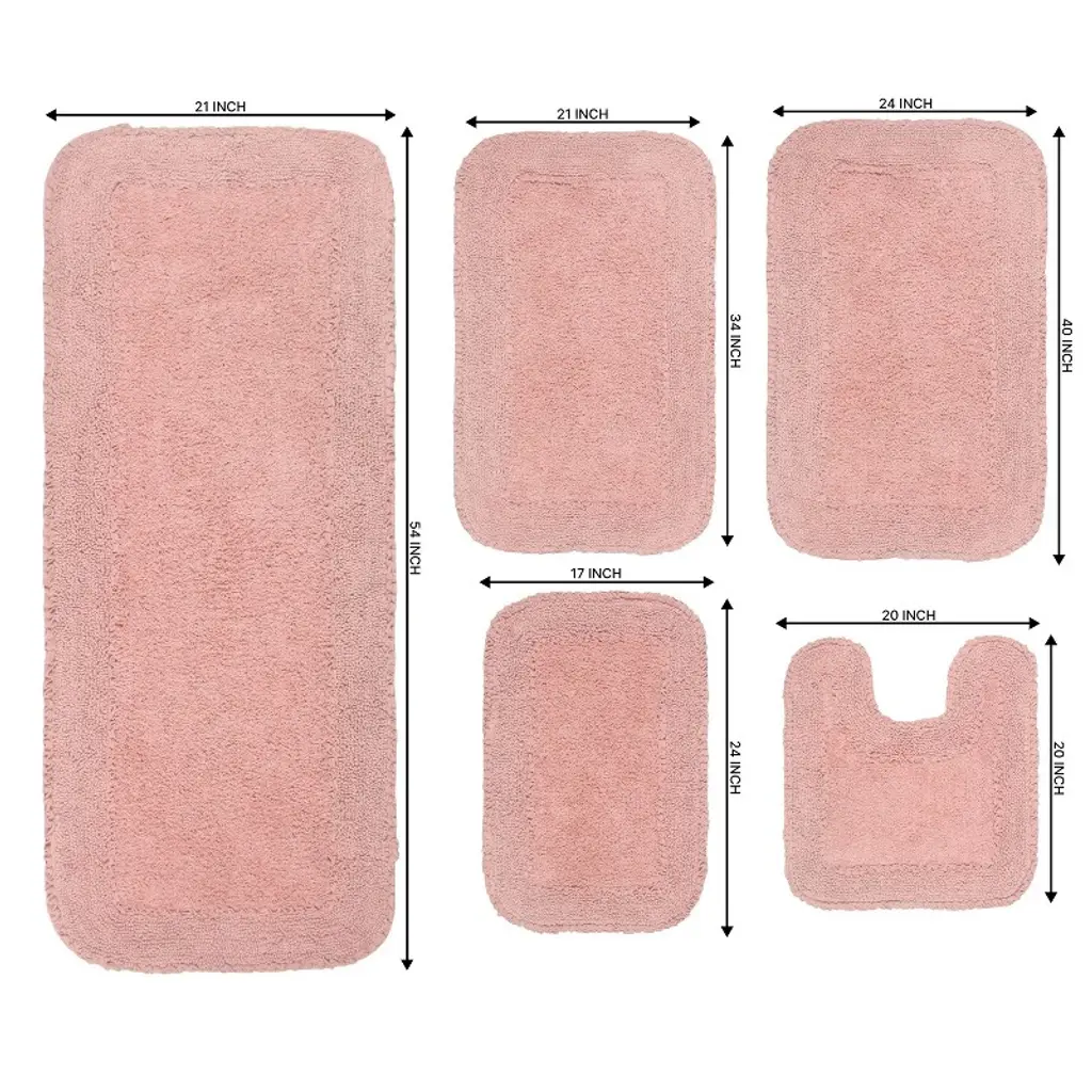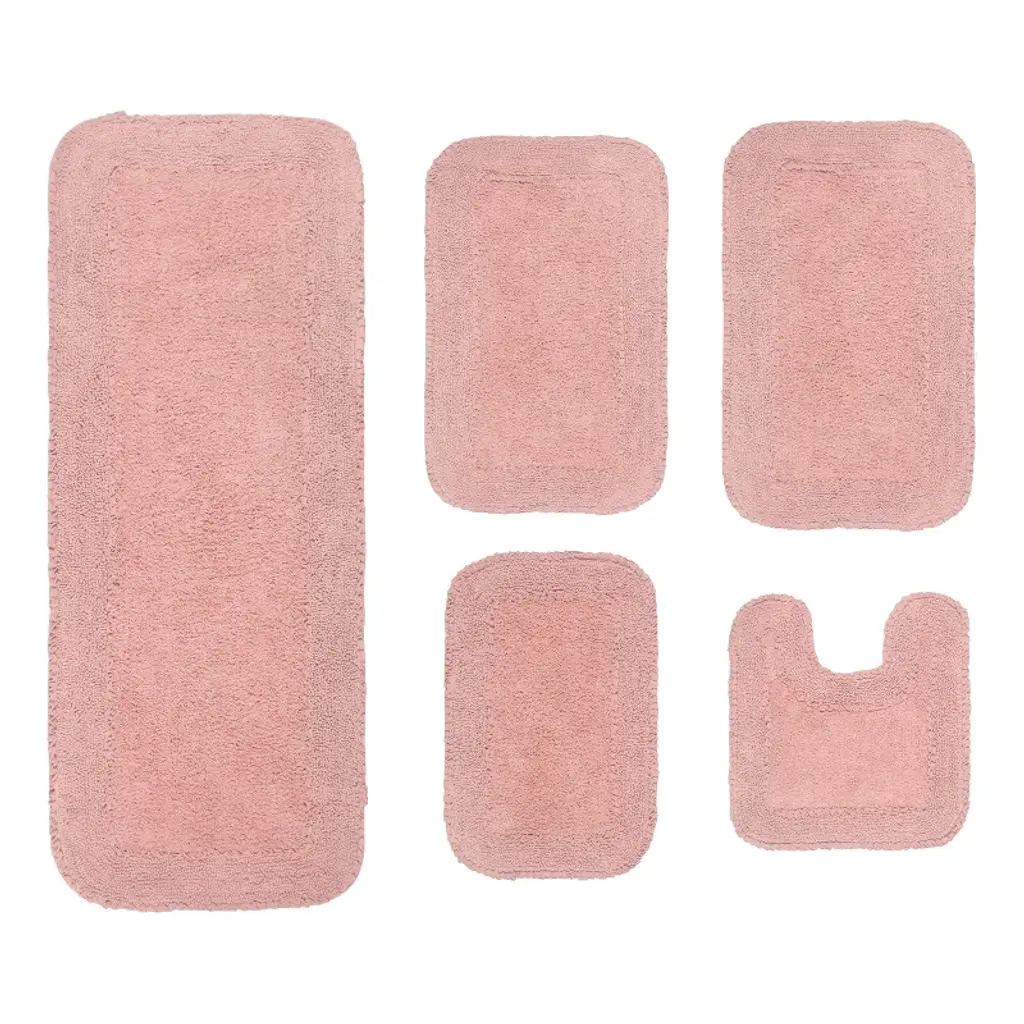 Radiant Bathroom Rugs Set, Washable Rug, Extra Soft And Absorbent Bath Rug, Bath Mat Set, Bath Floor Mat Non-slip, 5 Pcs Set With Contour, Pink
