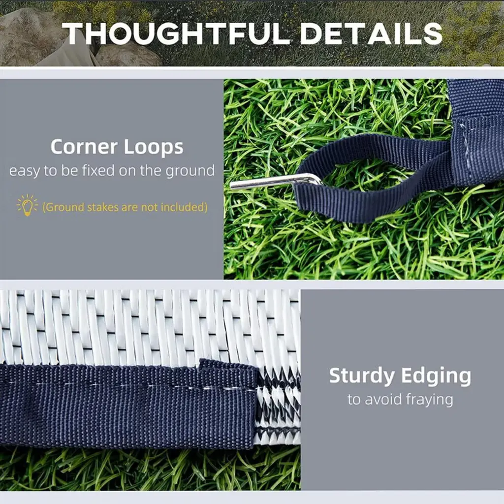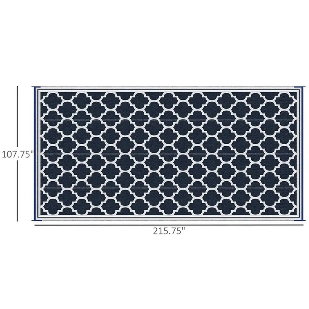 Resenkos Floor Mat Carpet,indoor Door Mat,reversible Outdoor Rug, 9'x 18' Waterproof Straw Floor Mat, Portable Rv Camping Carpet, Blue & White 215"
