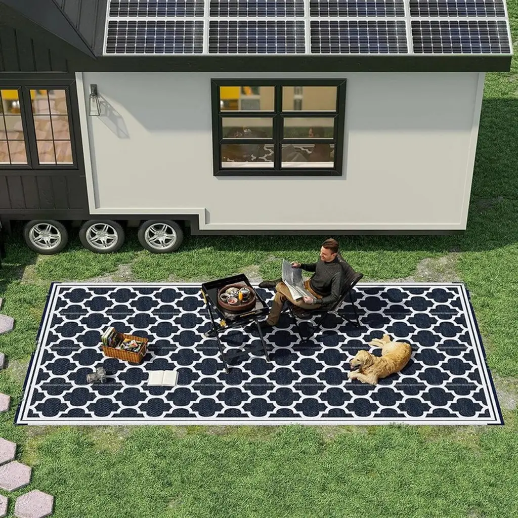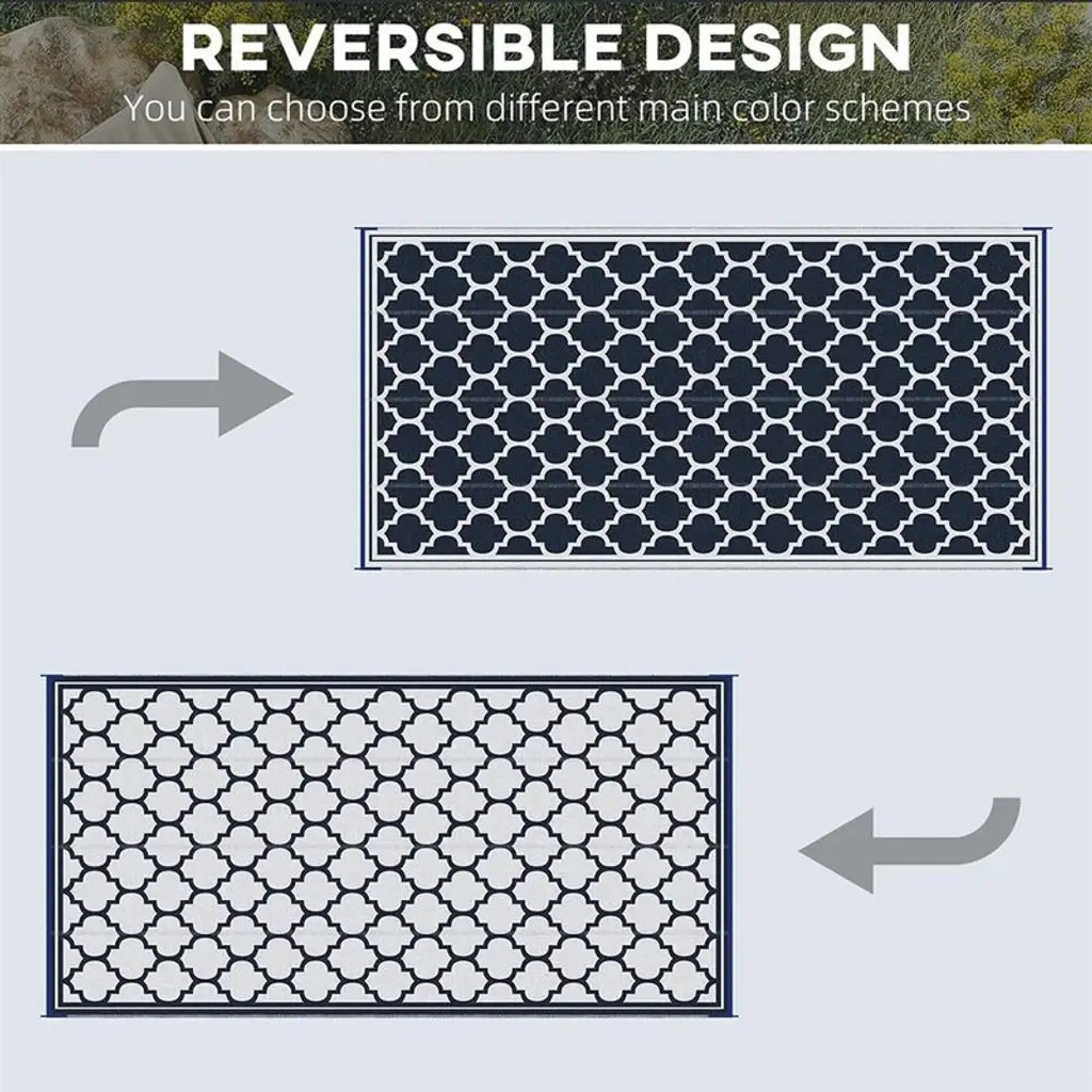 Resenkos Floor Mat Carpet,Indoor Door Mat,Reversible Outdoor Rug, 9'x 18' Waterproof Straw Floor Mat, Portable RV Camping Carpet, Blue & White