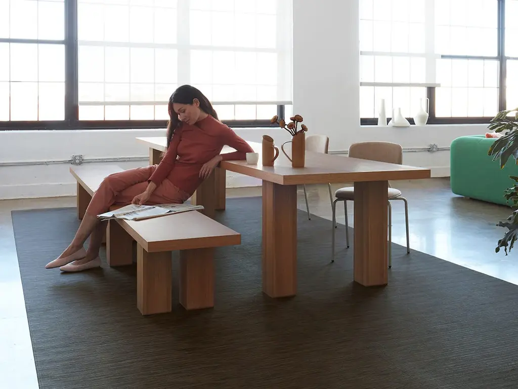 Rib Weave is a chunky, textural weave of flat, dry colors that has a surprisingly natural feel for a synthetic material. This original design will enhance table settings with its thoughtfully considered aesthetic. TO CLEAN: Vacuum to remove loose dirt or wipe clean with soap, water, and a soft sponge or cloth. Resists stain-causing bacteria, mold, and mildew. For over a decade, New York based designer Sandy Chilewich has been creating original and innovative vinyl products for the home. Her woven, tufted, molded and spun textiles are available in a range of vibrant and neutral hues that have become synonymous with the Chilewich brand name.