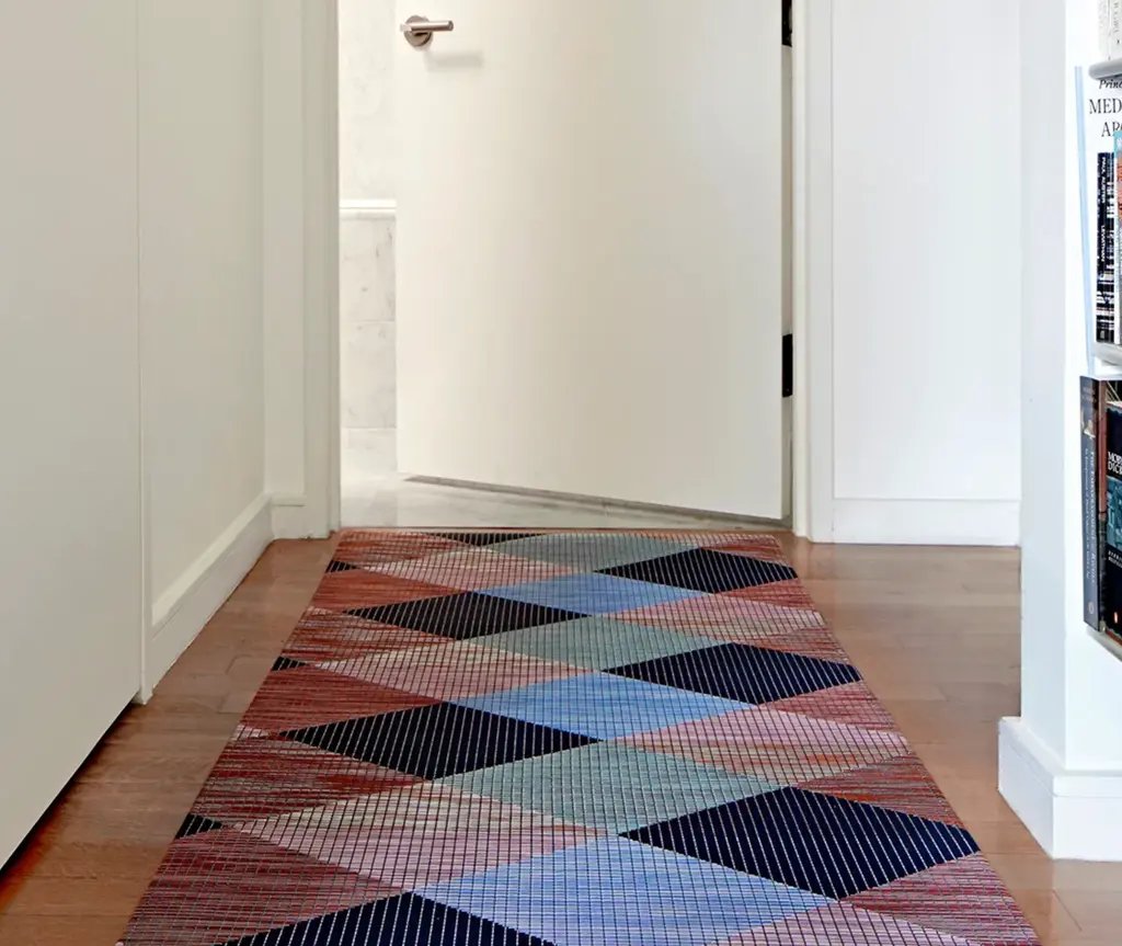 Made from woven textiles, our floor mats are durable, versatile beautiful and easy to clean. Perfect for use in entryways, dining areas, bedrooms, living areas and kitchens. TO CLEAN: Vacuum to remove loose dirt or wipe clean with soap, water, and a soft sponge or cloth. Resists stain-causing bacteria, mold, and mildew. For over a decade, New York based designer Sandy Chilewich has been creating original and innovative vinyl products for the home. Her woven, tufted, molded and spun textiles are available in a range of vibrant and neutral hues that have become synonymous with the Chilewich brand name.