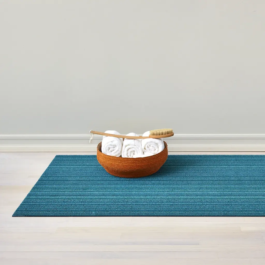 Durable, soft and hard-working, Chilewich's's Skinny Stripe Collection of shag mats is suitable for any space, indoors or out. Created by tufting custom extruded yarns as loops onto a primary backing and then binding them onto a hardworking vinyl, the mats come in a variety of sizes to bring easy-care style to your home.
