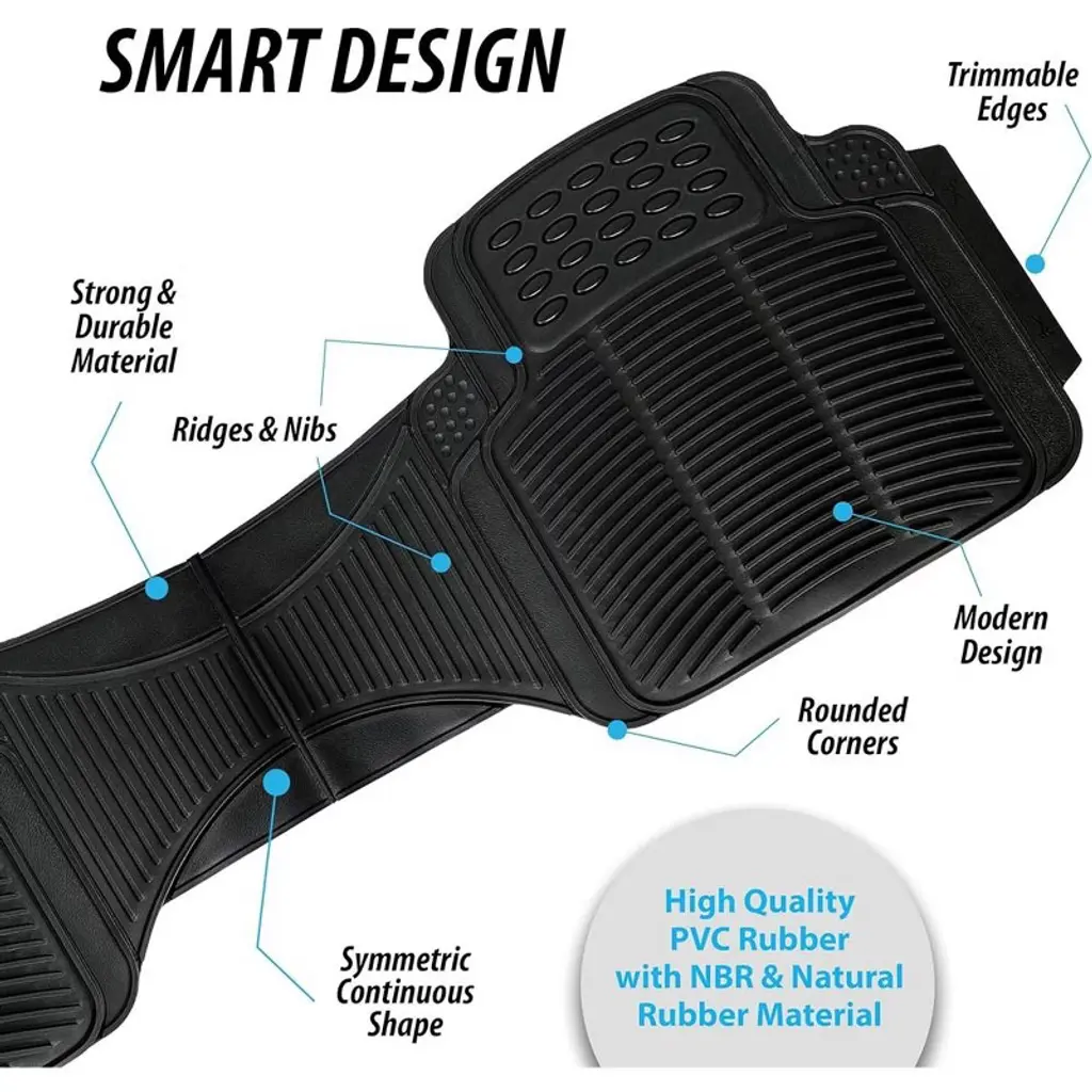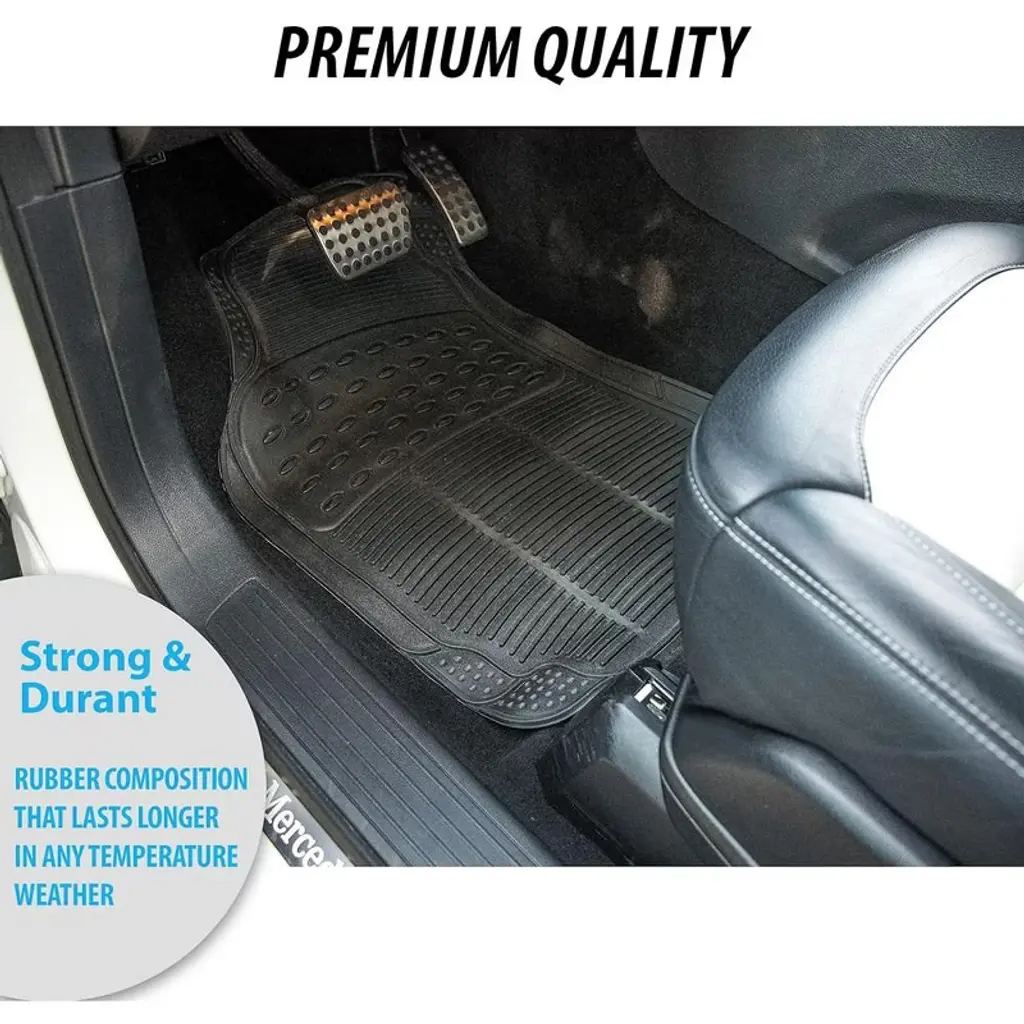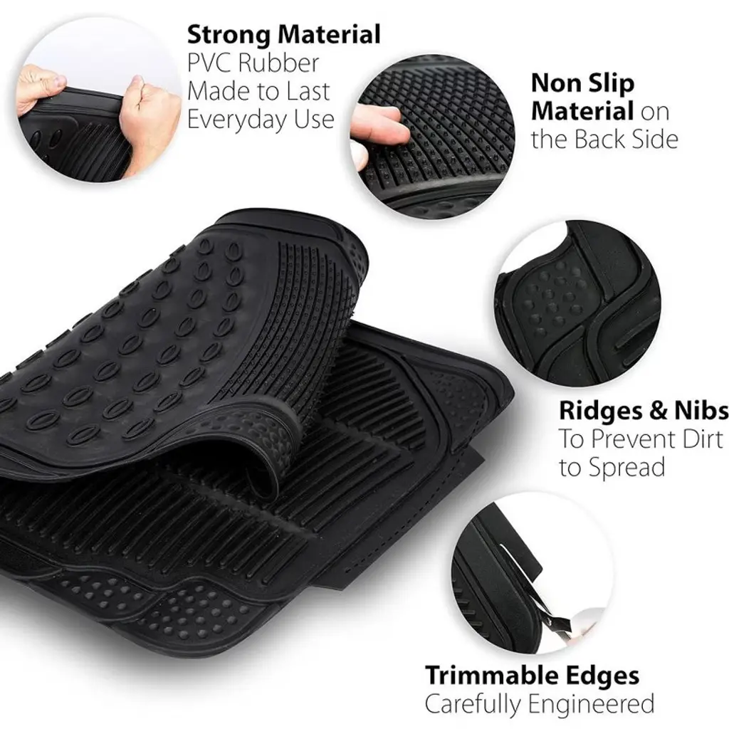 Zone Tech All Weather Rubber Semi Pattern Car Interior Floor Mats – 3-Piece Set Black Heavy Duty Car Interior Floor Mats 2- pack Zone Tech All Weather Car Interior Floor Mats is a accessory for your car's interior. The Zone Tech mat is made with High Quality PVC Rubber with NBR and natural rubber material to ensure Durability and Longevity. The floor mat does not crack or deform under pressure or Extreme temperatures. The Heavy Duty construction allows the mat to Retain its shape overtime. The Zone Tech car floor mat is 100% Odorless, no more rubber smell that cause headache. The Zone Tech floor mat has also no overwhelming petrol odors, guaranteed Non-toxic for the whole family. The Zone Tech car floor mat is fully Customizable. The floor mats have Trimmable edges; you can easily cut it to make it fit your vehicle. The Zone tech floor car mat can fit on most heavy duty trucks, van, and SUV vehicles. The Zone Tech car floor mat is Waterproof, and Stain Resistant. With Zone Techs' carefully Engineered Design ridges and nibs, the floor mat prevents most of the dirt such as mud, snow, water, or debris from messing your car's interior floor. Just simply spray the mat with water and air dry, the Zone Tech car floor mat can be easily Cleaned and Maintained Zone Tech Brand is known worldwide with superior product quality and service!