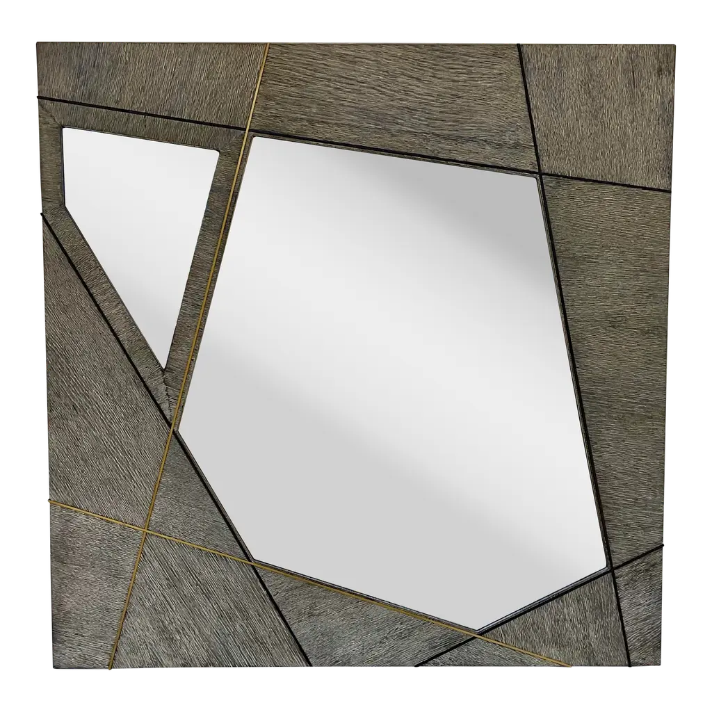21st Century Art Deco Style Brass Frame And Studs Paneled Distressed Mirror