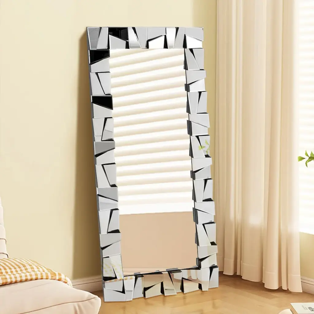 This enormous floor mirror with its glass frame in 3D just makes a statement in any room. This glass will work both on practical and stylish levels, therefore it's perfect for any bedroom or dressing area. Add style to your home interiors with its luxurious look and create a fashionable centrepiece in any room.