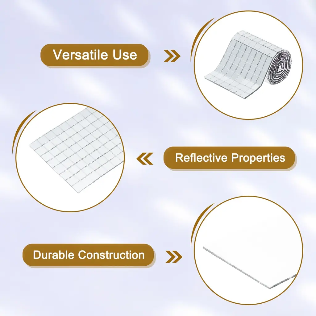 What is this?These mirror squares can be used in various applications - from home decor, parties, weddings, clubs, to stage performances. Whether you want to create an eye-catching centerpiece or a vibrant dance floor, these tiles are versatile enough to suit your needs.What will I get?Single Piece Size: 5 x 5mm / 0.2 x 0.2 inchTotal Size: 4 x30cm / 1.6 x 11.8 inchColor: SilverMaterial: GlassIn the package of: 15 Sheet x Mosaic Mirror, 7200 Pcs in totalAre there any advantages of the product?1. Reflective Properties: The glass mirror surface of these tiles reflects light beautifully, creating enchanting patterns and reflection around the room. They can enhance the ambiance and create a dynamic atmosphere wherever they are installed.2. Durable Construction: Made of glass material, these disco ball tiles are sturdy and long-lasting. They are designed to withstand regular use and applied for multiple events or occasions.How to use it?1. Ensure that the surface where you will be applying the mosaic tiles is clean, dry, and free from any dust, dirt, or debris.2. Peeling off the protective film from the self-adhesive side of each tile. Take care not to touch the adhesive as it may reduce its effectiveness.3. Press each tile firmly onto the desired surface, following your plan. Apply even pressure to ensure proper adhesion.4. Avoid touching or disturbing the mirror stickers during the time when waiting for adhesive.What should I notice?Please choose the correct size for you.