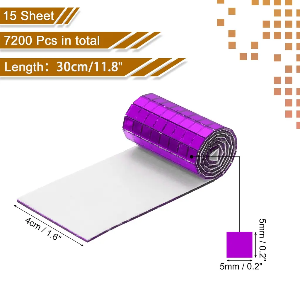 7200 Pcs Glass Mirrors Disco Ball Tiles Self-Adhesive 5X5mm, 15 Sheet - Purple