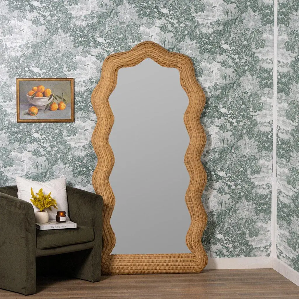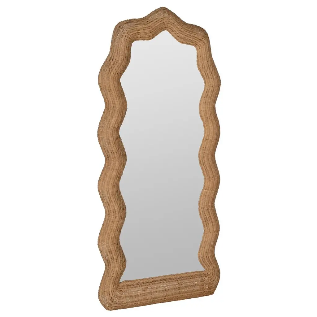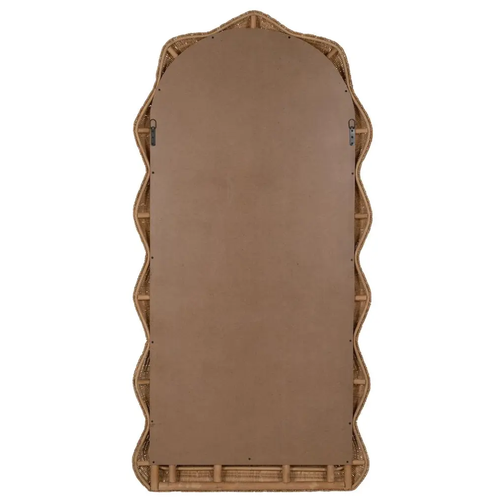 Adeline Coastal Beach Natural Rattan Scalloped Floor Mirror