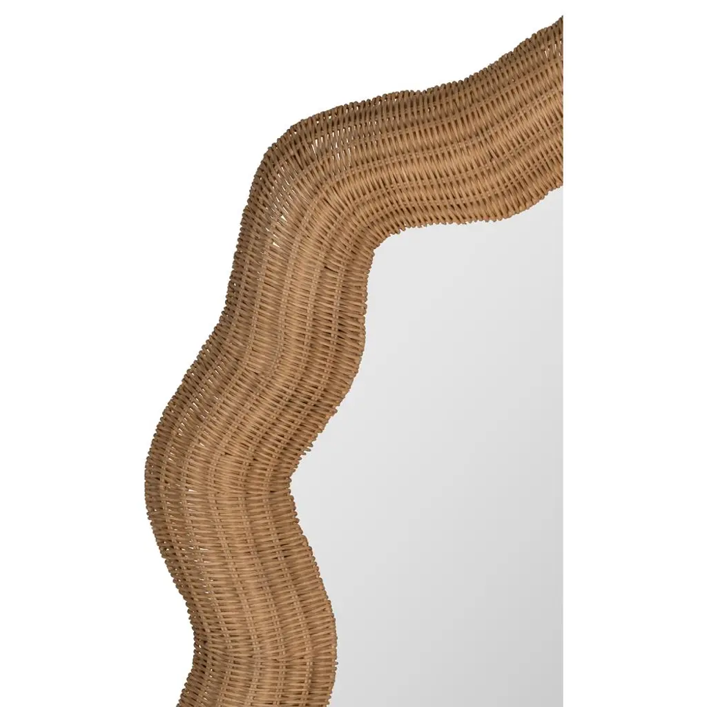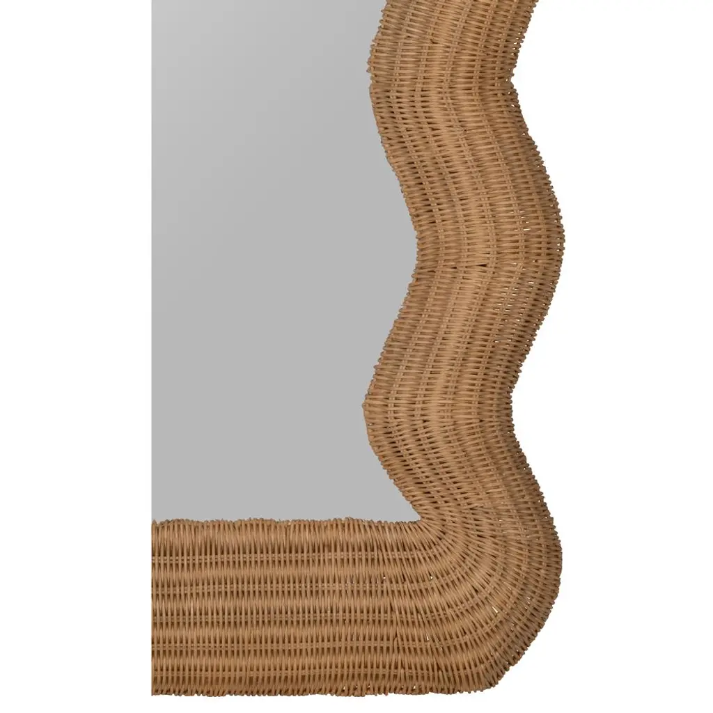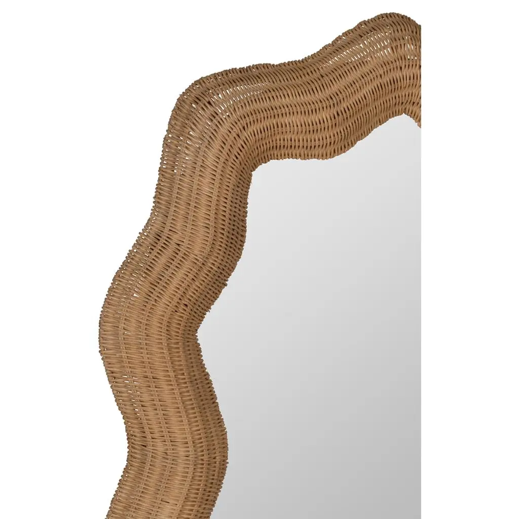 Adeline Coastal Beach Natural Rattan Scalloped Floor Mirror