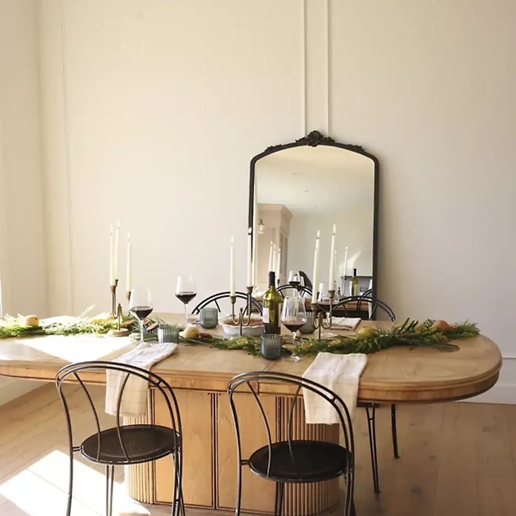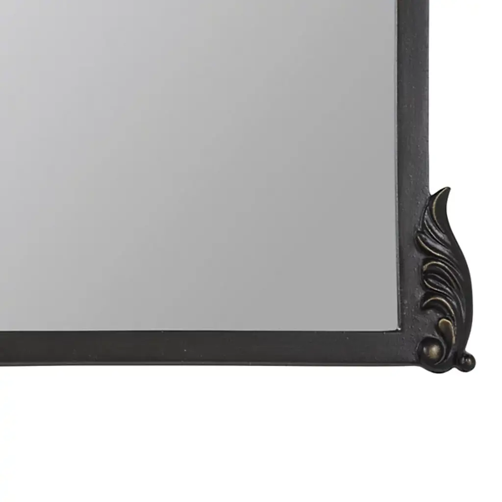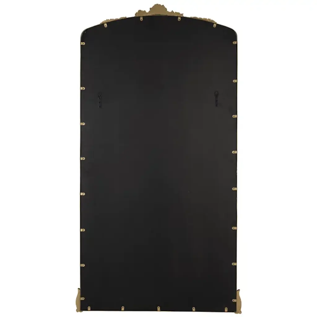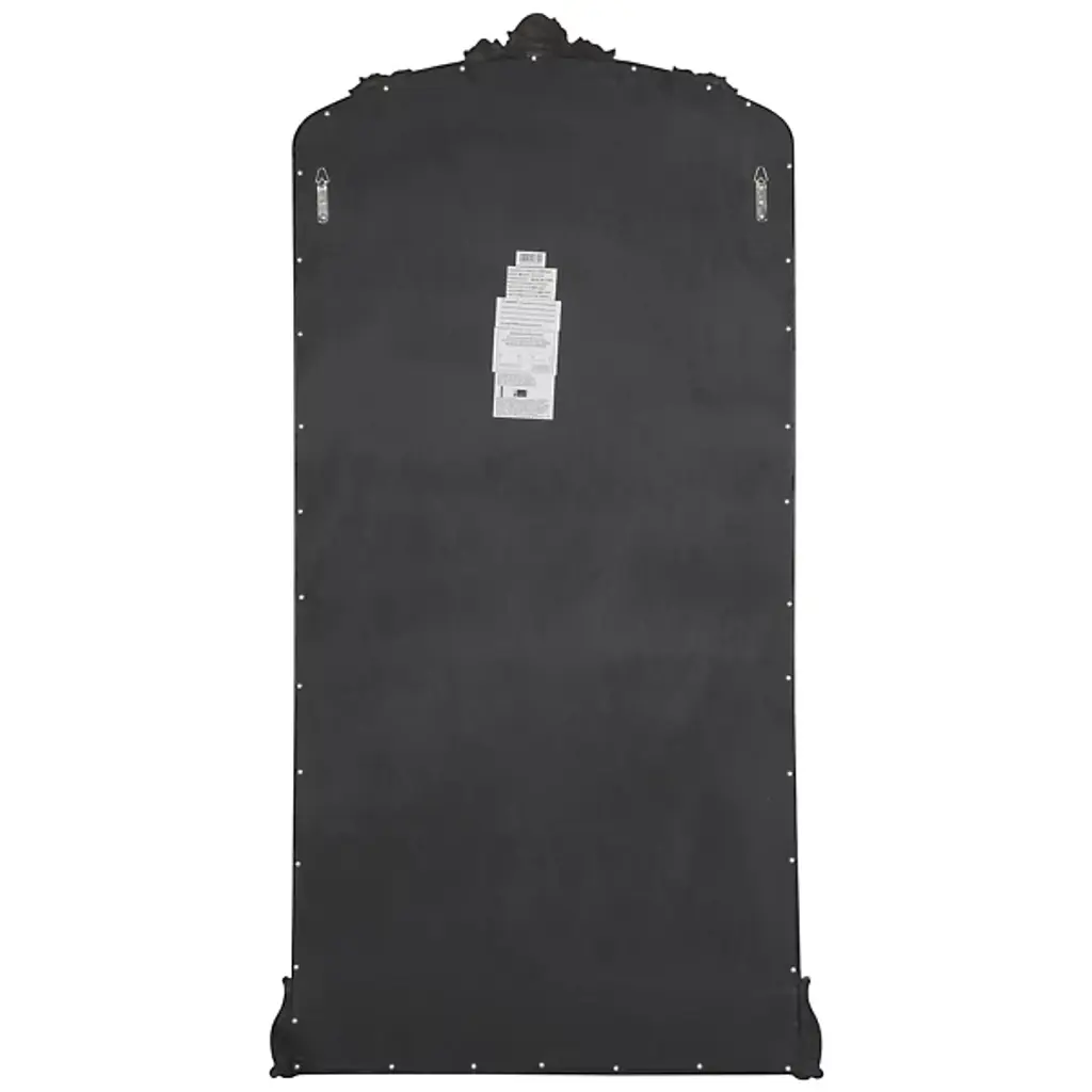 The Adeline Ornate Floor Mirror from Cooper Classics marries French aristocratic design with modern functionality. Ornate scrollwork crowns the arched frame, while detailed carvings at the base anchor the piece. Metal and polyurethane construction ensures stability, complemented by anti-tip hardware for safety. This full-length mirror suits dressing rooms and bedroom corners where its grand proportions can be fully appreciated.