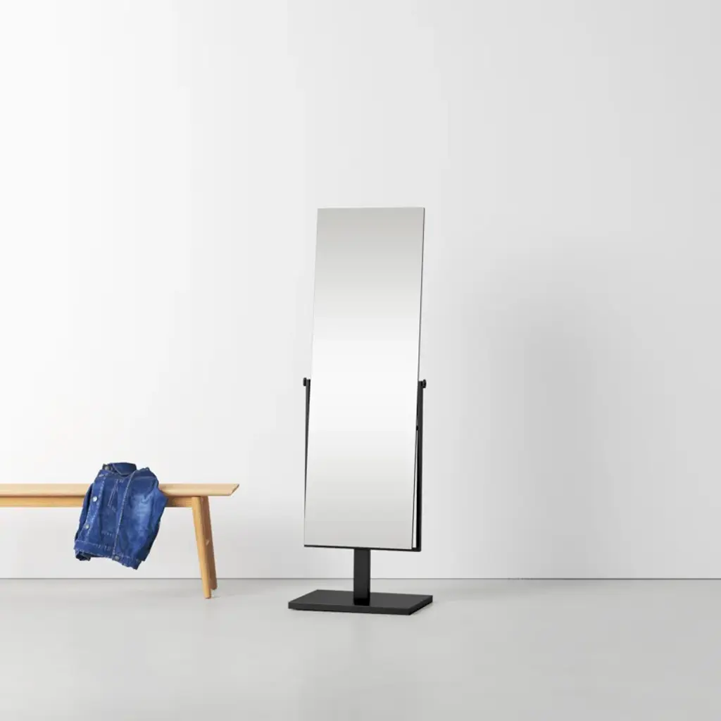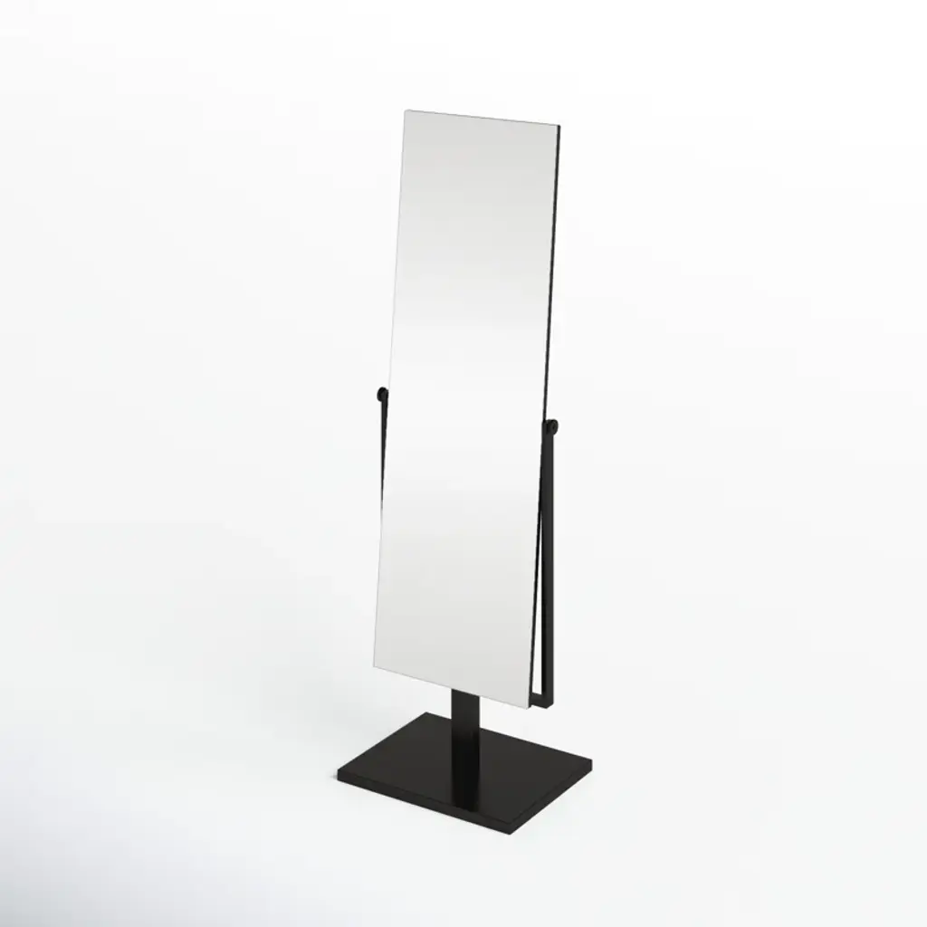 Set within the contemporary bedroom, this full-length standing mirror offers utility and style to the simple space. With a grand structure, this full-length mirror can take in one's entire reflection from head to toe. Styled with minimal yet comforting furnishings and decor, it gleams brightly, enhancing the elements in its midst.