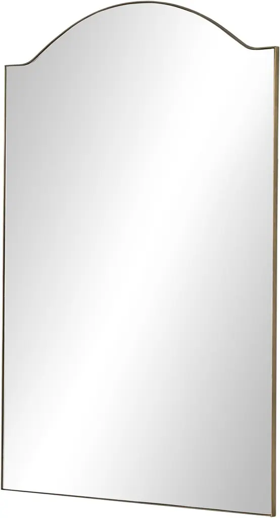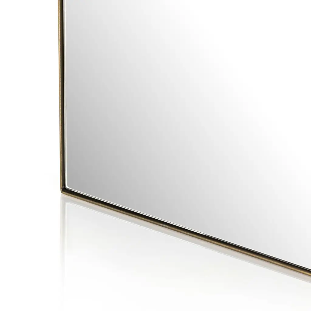 Given its substantial proportions—seven feet high and more than five feet wide—this floor mirror is certain to command attention. Its curved top and slender antiqued brass frame add to its allure.