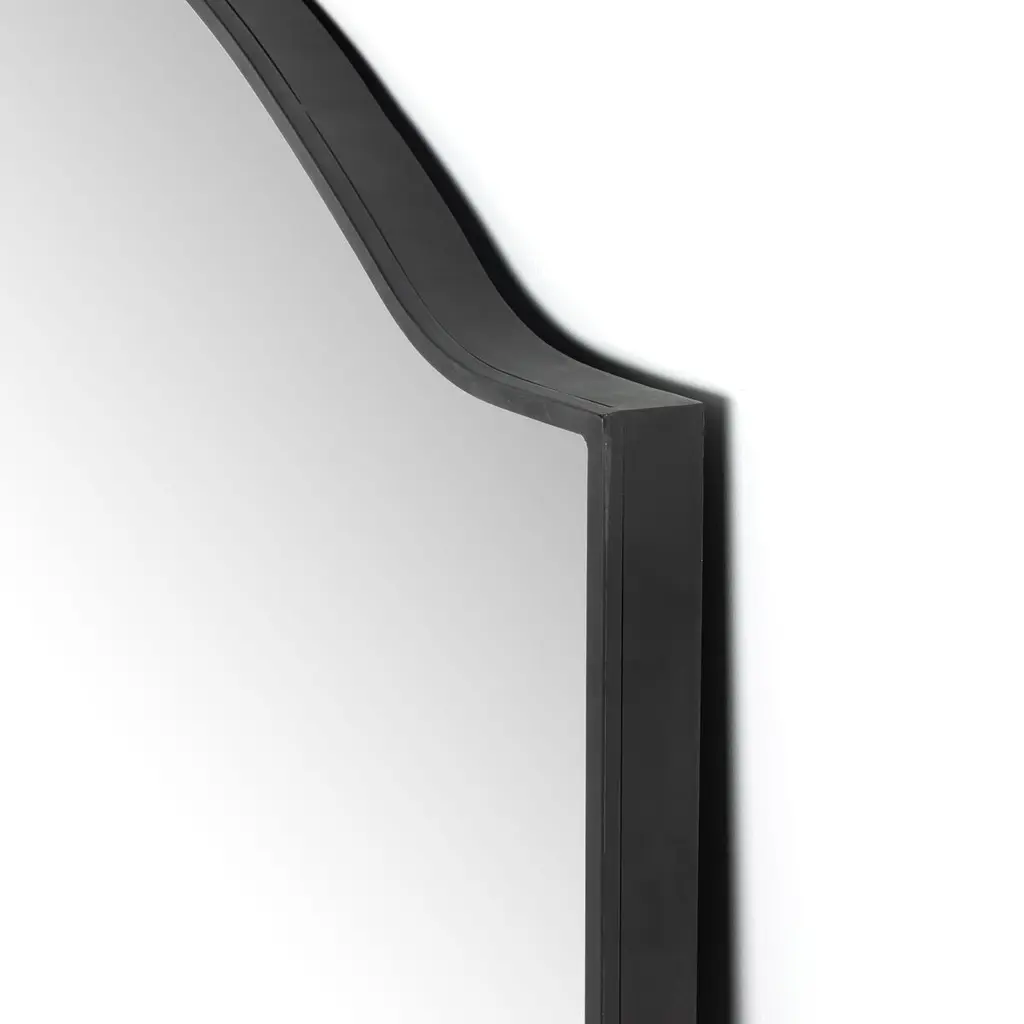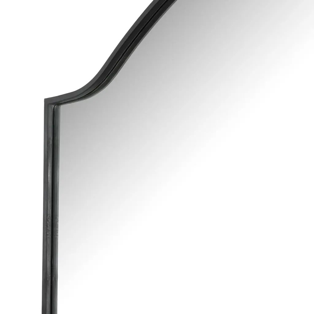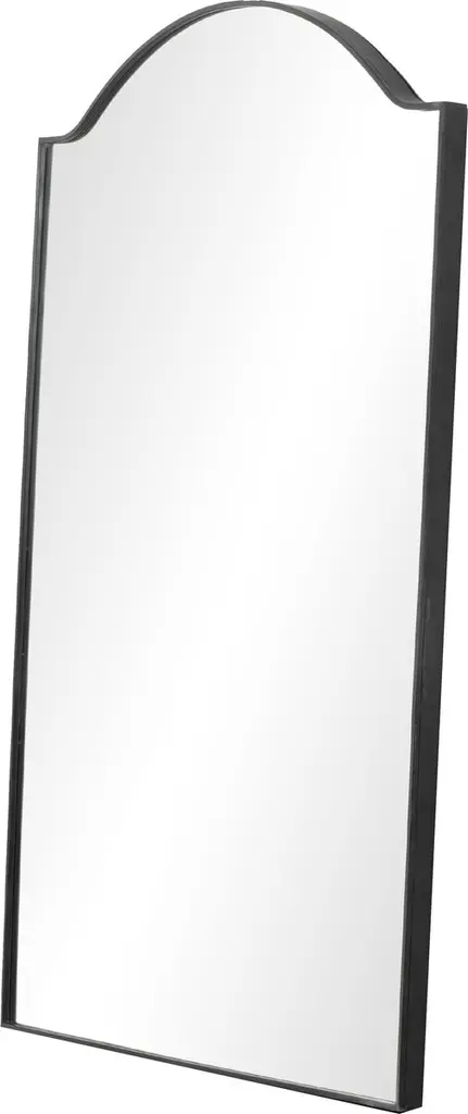 Given its substantial proportions—seven feet high and more than five feet wide—this floor mirror is certain to command attention. Its curved top and slender antiqued brass frame add to its allure.