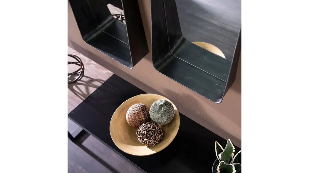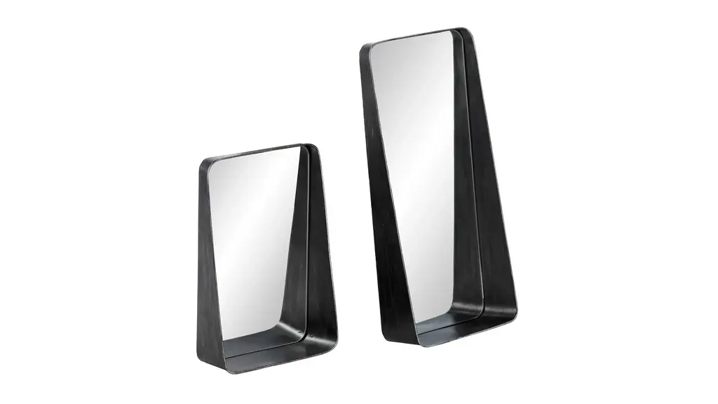 Put functional design front and center with the 2-pc. Mirror/Shelf Set. Sleek metal frames give your living space a sophisticated feel, while convenient display shelves hold small trinkets or everyday necessities. Add this stylish set to your powder room to complete your vanity design, or place throughout your open concept floorplan for a perfectly coordinated look. Make the most of your small space with this set of decorative mirrors.