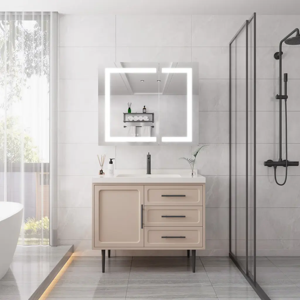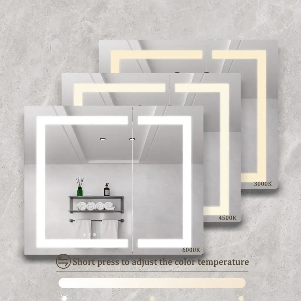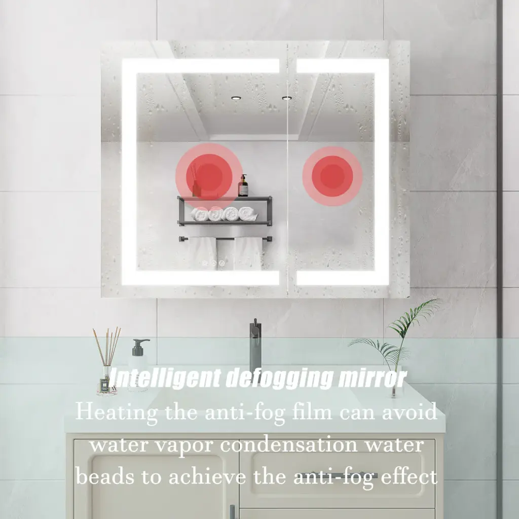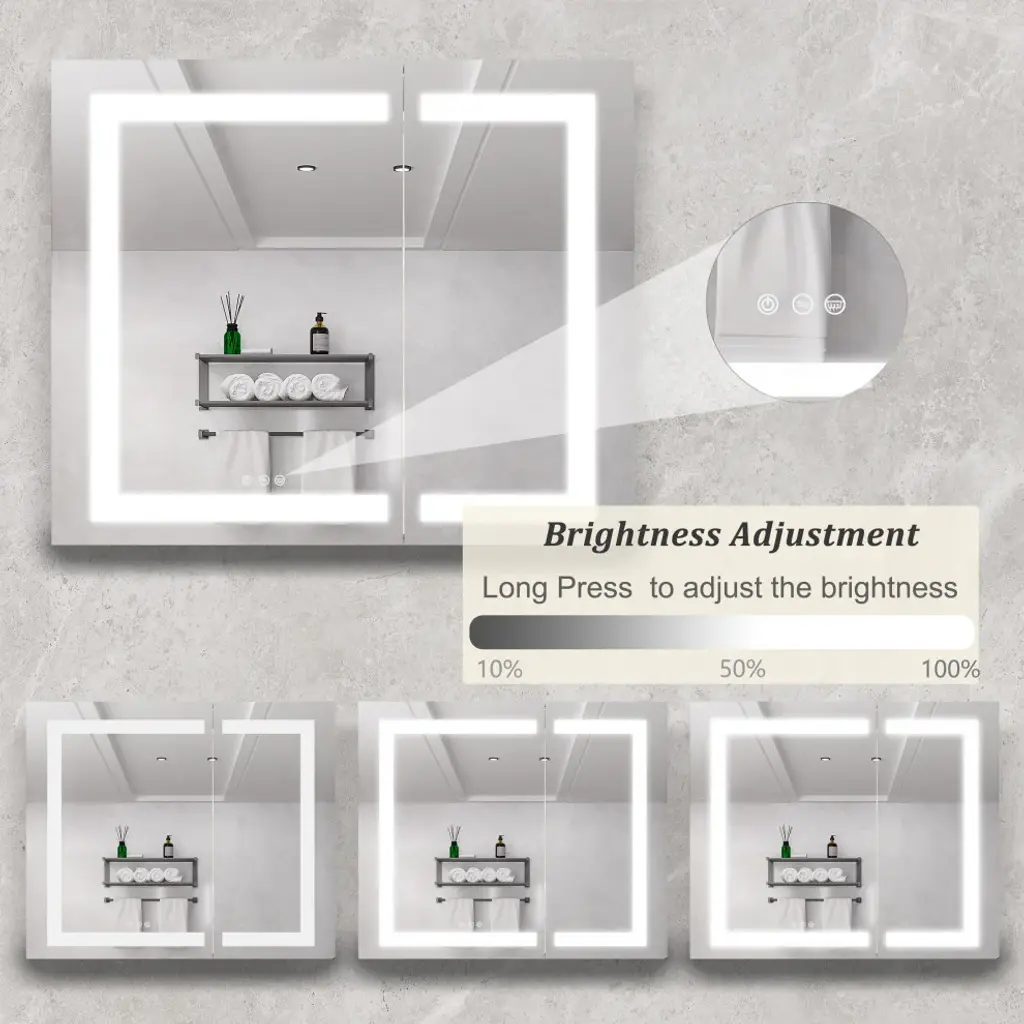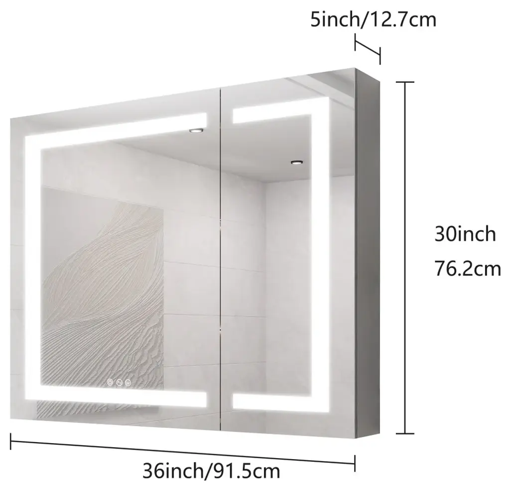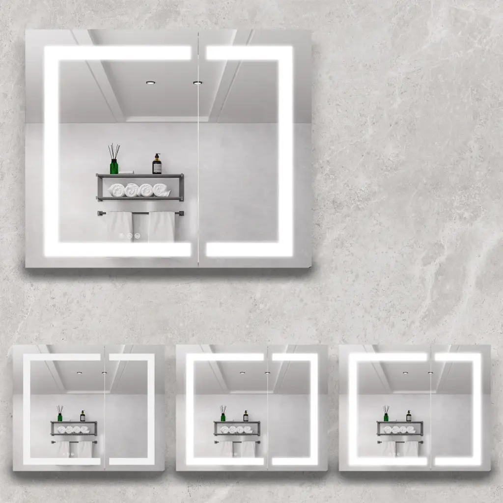 Surface-mounted or recessed-mounted, this medicine cabinet provides essential storage space without sacrificing floor space. Perfect for bathrooms that are a bit small. You can install it over the sink, next to the bathtub, or anywhere else. The mirror frame is made from aluminum alloy material, which is corrosion-resistant. You don''t have to worry about the stability of the structure. There are three touch switches for this cabinet, which control the main light, the anti-fog function respectively, the brightness adjustment, and the color temperature adjustment of the lighting. The independent control function allows users to know how to use it easily. An even mix of classic and contemporary elements, this clean-lined medicine cabinet lets you tuck away items in style.1.Double door mirror cabinet (2-in-1: embedded&wall mounted)Surface-mounted or recessed-mounted, this medicine cabinet provides essential storage space without sacrificing floor space. Perfect for bathrooms that are a bit small. You can install it over the sink, next to the bathtub, or anywhere else. 2.Double door double-sided mirror door, one circle of mirror door with regular sanding (left and right doors, large and small doors).3.The mirror frame is made from aluminum alloy material, which is corrosion-resistant. You don''t have to worry about the stability of the structure.4.It is equipped with a three button Touch switch to control the main light and anti-fog film and adjust the light+color temperature, 3-color temperature, dimmable led with a long press to adjust the brightness. A lighted medicine cabinet can adjust the brightness from dark to bright according to your preference.5.This medicine cabinet with reasonable shelves to fully maximize storage space and let your bathroom and other scenarios be organized and clean.6.A bathroom medicine cabinet with a mirror provides uniform and optimal bright lighting, which can eliminate harsh shadows and hot spots when you are shaving, brushing your teeth, or putting on makeup.7.An even mix of classic and contemporary elements, this clean-lined medicine cabinet lets you tuck away items in style.8.The hinge is designed to slowly open and close, providing safety and care for you.