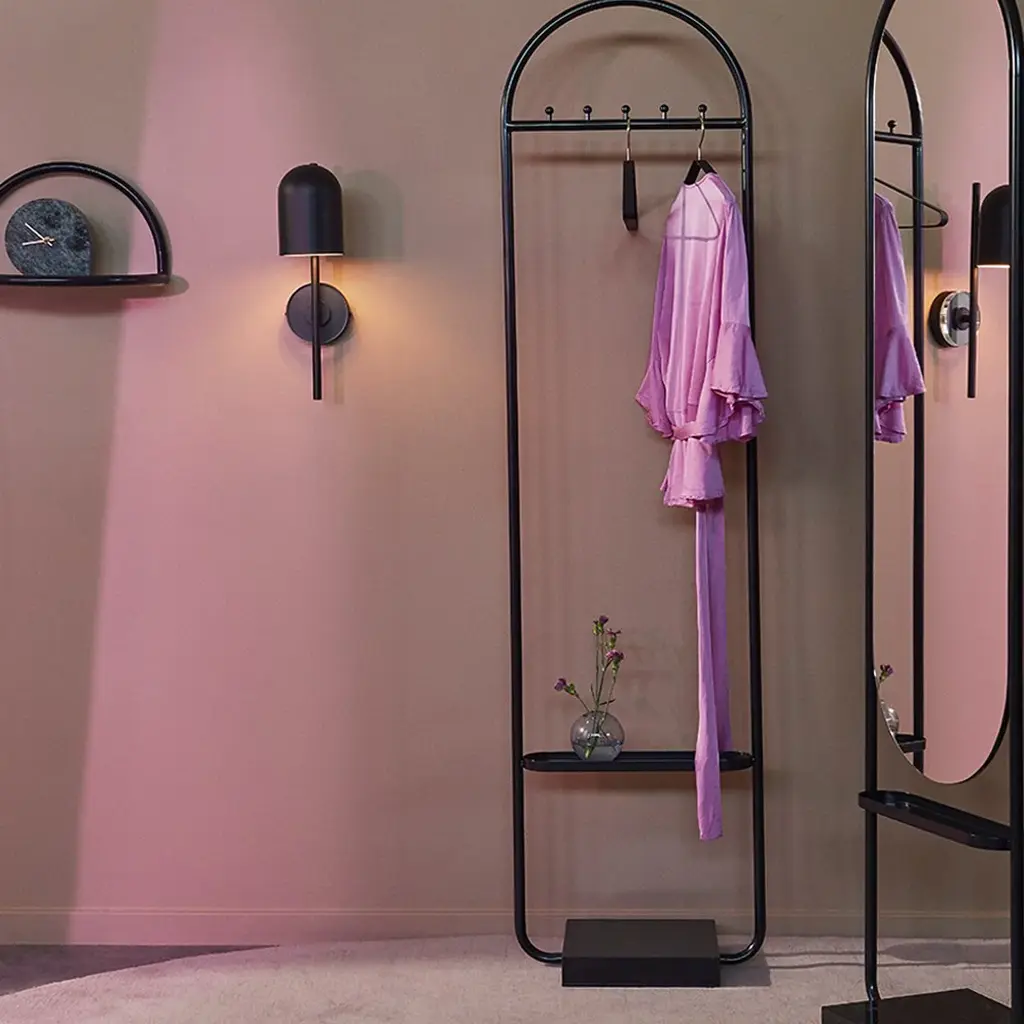 Angui floor mirror is both impactful and practical. A beautiful addition to any entrance, hall or even bedroom you can imagine. The elegant oval shape of the frame is solidly placed on a marble base and are functional, stable and decorative at the same time. The mirror has a small shelf for all those little things you need a place for. The Angui collection is a beautiful range of different furniture. The collection includes benches, chairs, shelves and mirrors in a wide vairety of sizes. Sophisticated pieces that will enhance your personal style. The pipe styled frame and tone in tone is on trend for the season and will enhance any personal style.