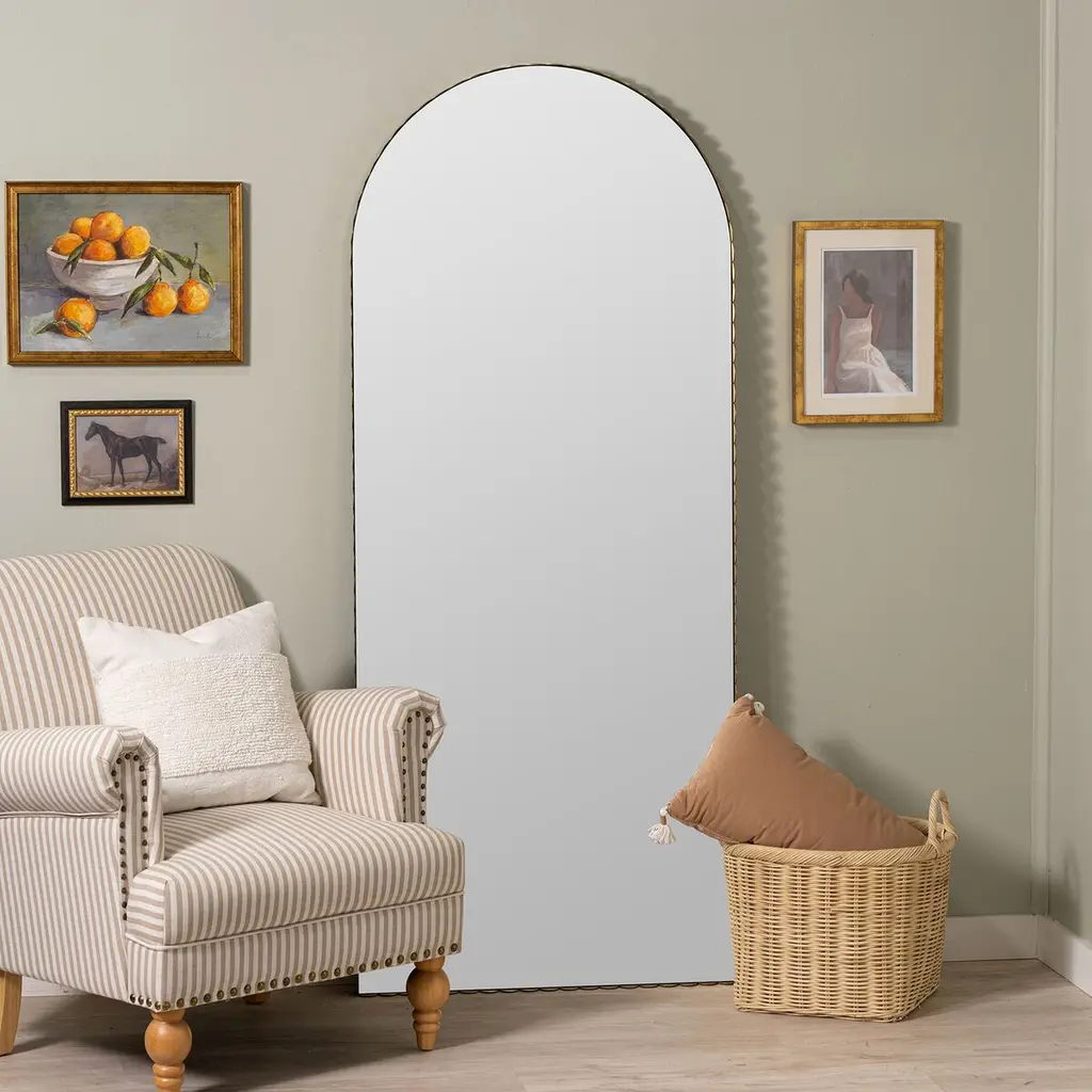 Ansera Arched Scalloped Floor Mirror, Gold
