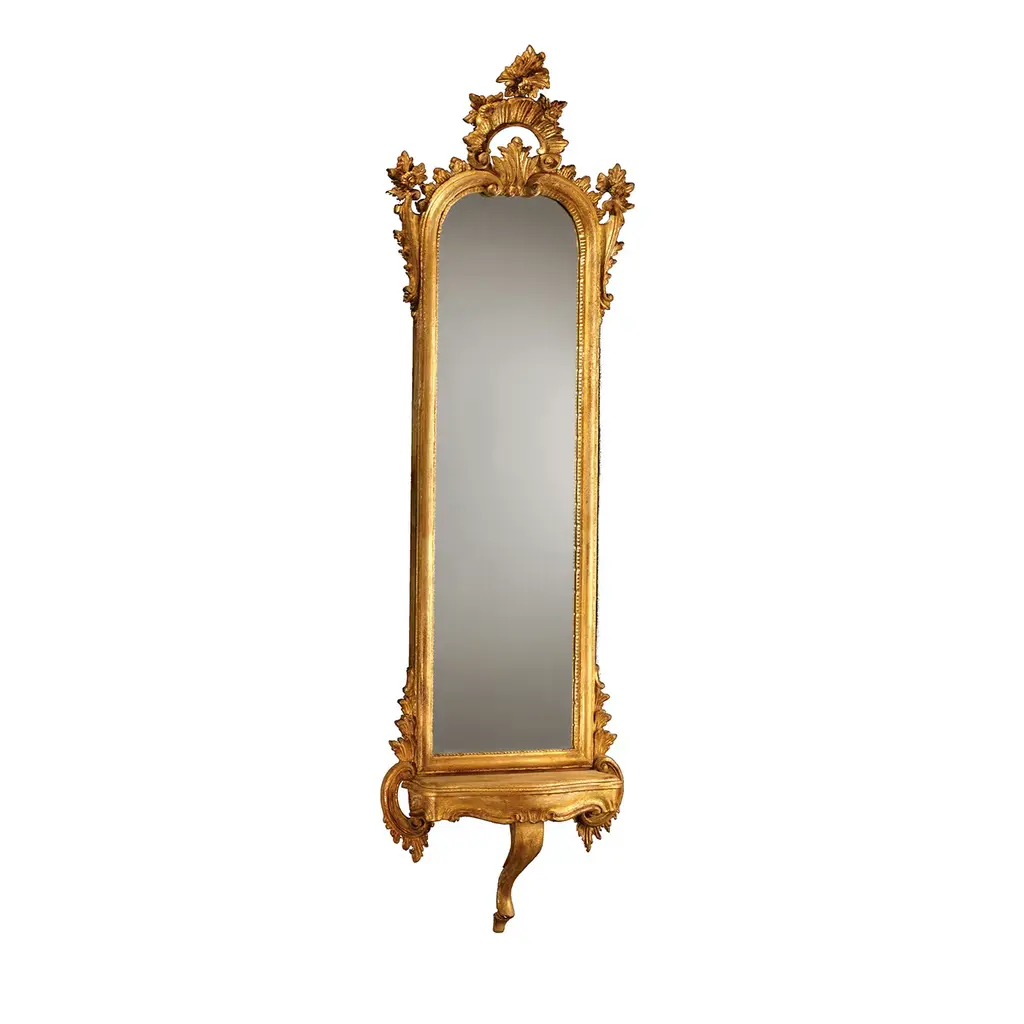 •gilt wood frame •original mirror •patinaed finish •late 19th century •belgium Dimensions •51"W x 10"D x 93.5"H