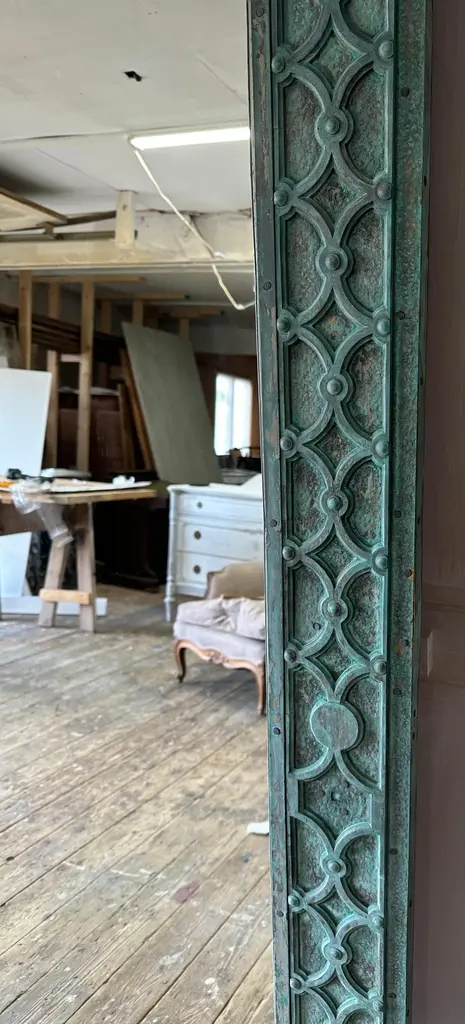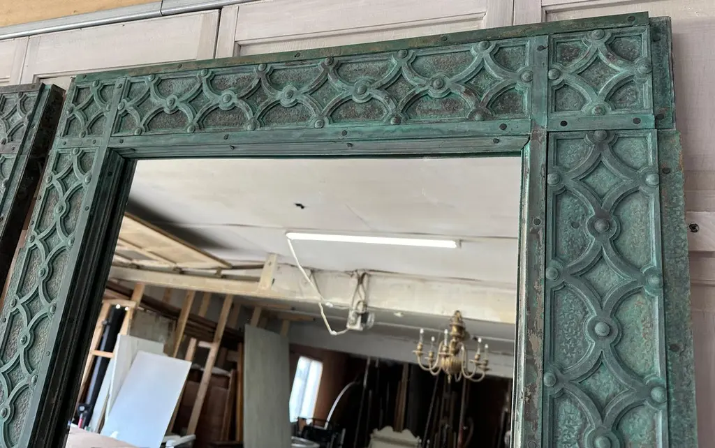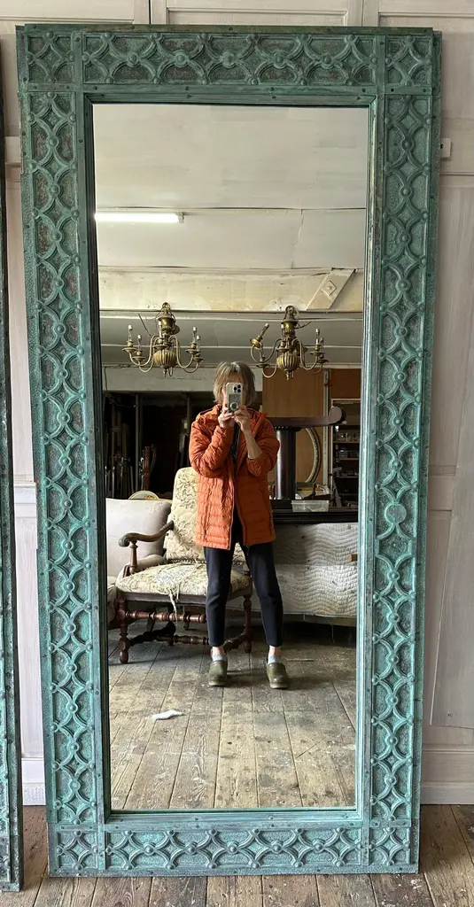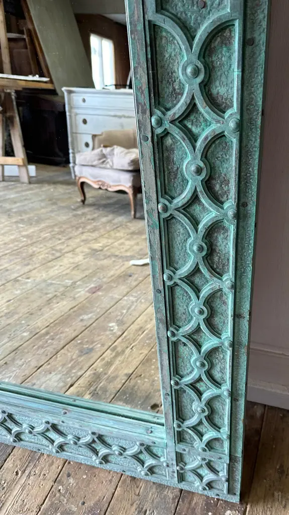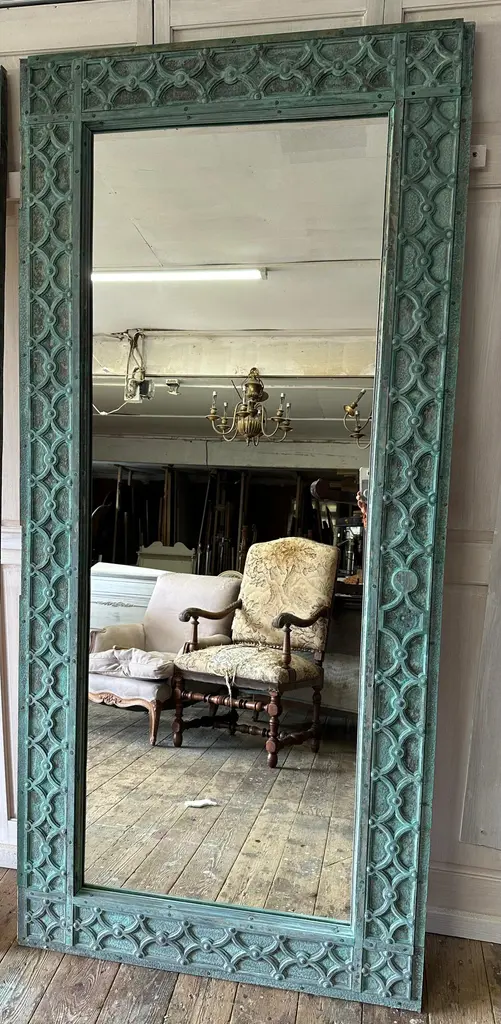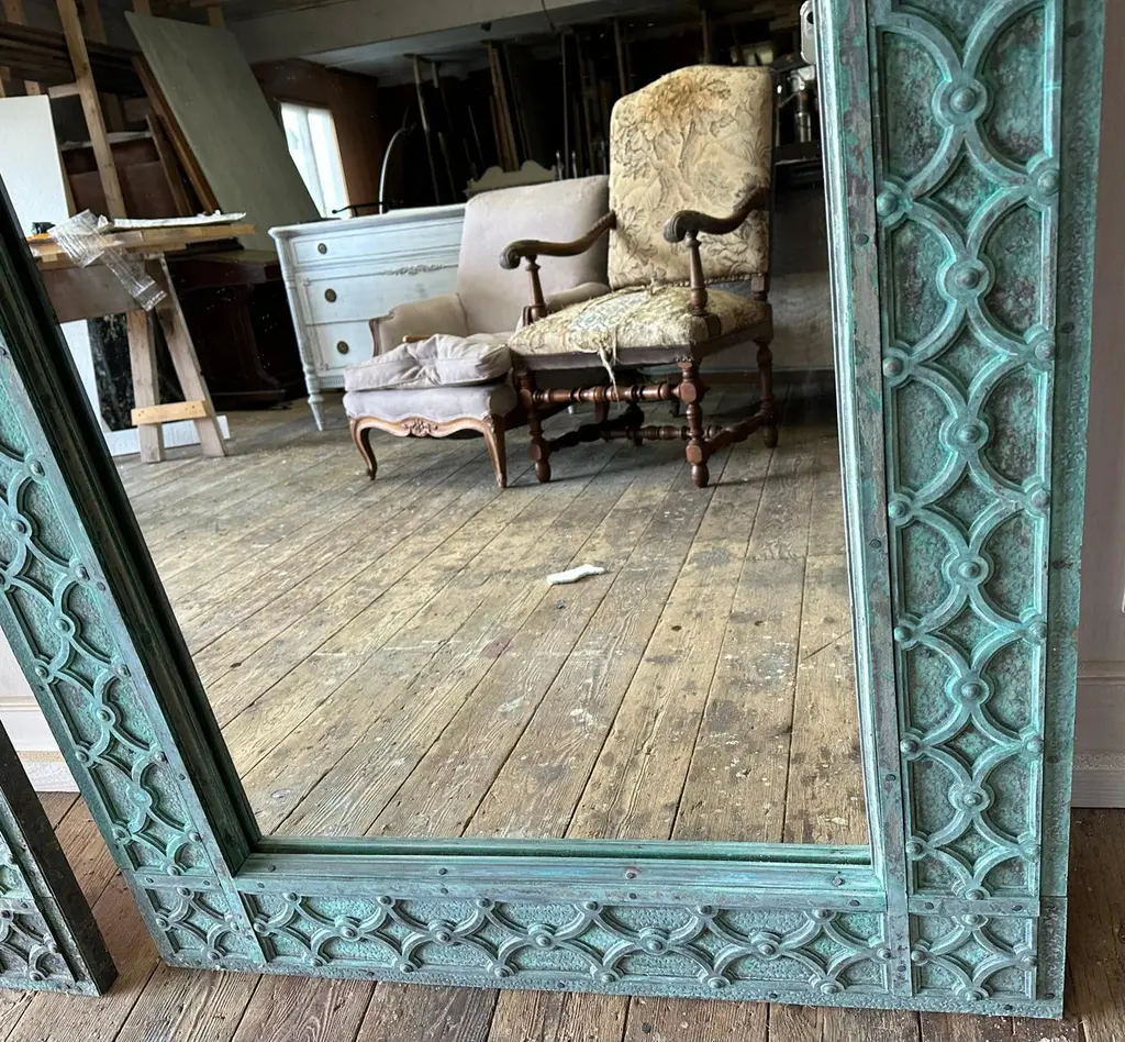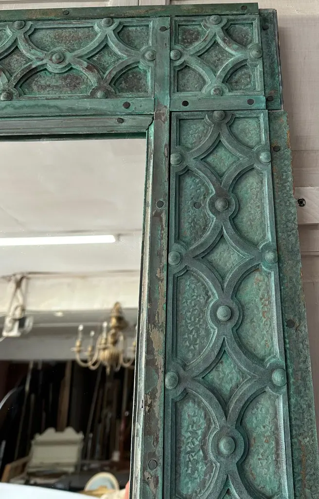 Antique Monumental Full-Length Verdigris Bronze Floor Pier Mirror