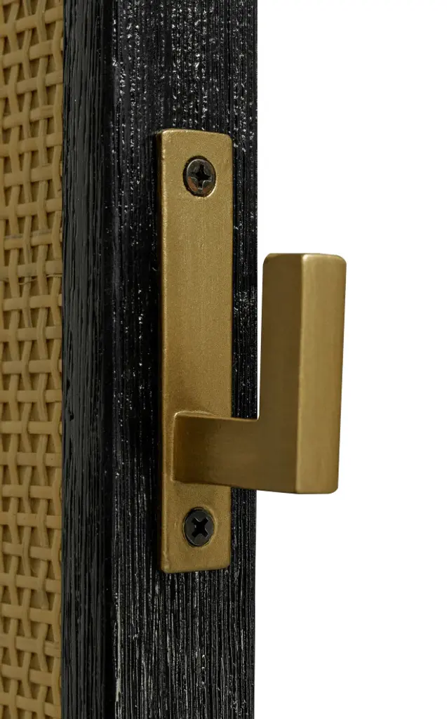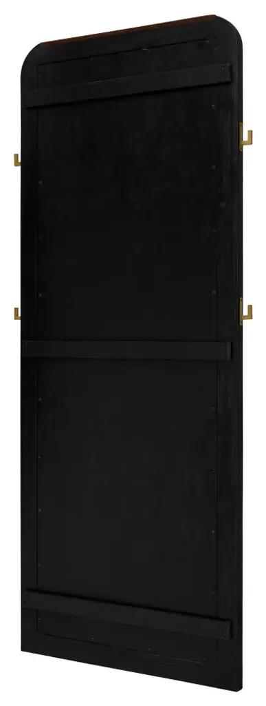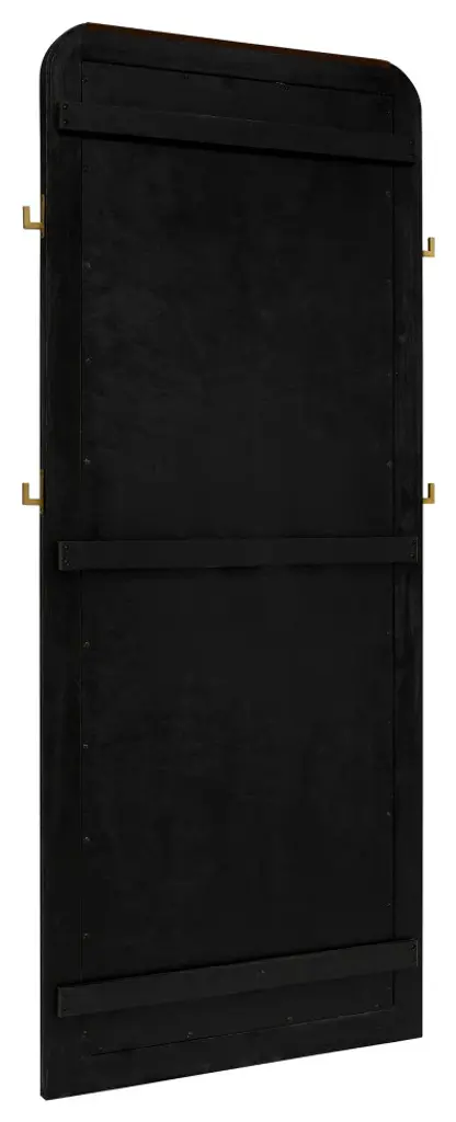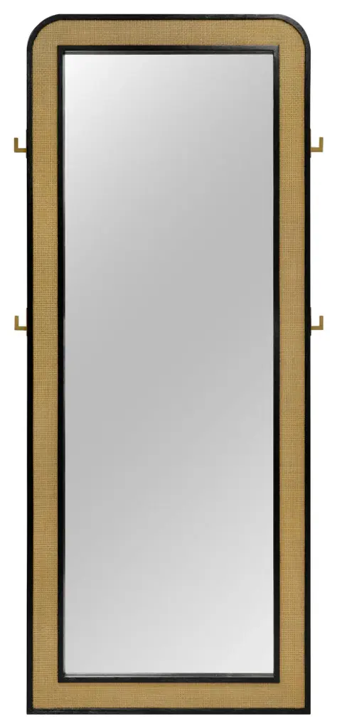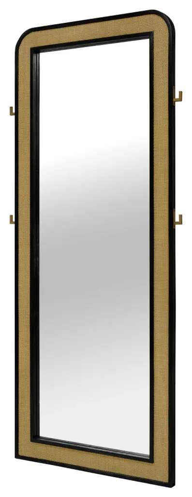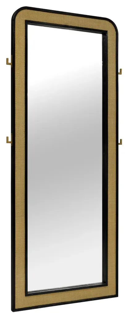 Elevate your bedroom or dressing area with this elegant full-length mirror, designed to bring both style and functionality to your space. The mirror features a sleek, rounded-edge frame finished in a sophisticated, textured material that adds a touch of warmth and refinement. Integrated hooks on the sides provide convenient storage for accessories, making it a versatile addition to your decor. Whether you"re checking your outfit from head to toe or simply adding a decorative element, this mirror enhances any room with its blend of practicality and chic design. Perfect for modern and transitional spaces, it''s a must-have for creating a polished look in your home. Features: Includes: One (1) floor mirror Full-length mirror in black finish with sleek, rounded-edge frameRadio weave natural cane adds warmth and sophisticationIntegrated side hooks for convenient accessory storageThe black finish beautifully contrasts against the natural canePerfect for enhancing bedroom or dressing areasColor: BlackDimensions: Floor Mirror: Width: 33.75, Depth: 2.00, Height: 76.00, Weight: 48.32