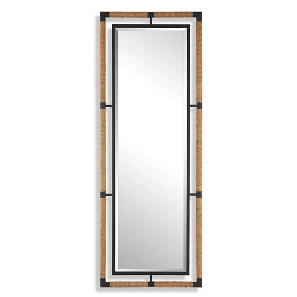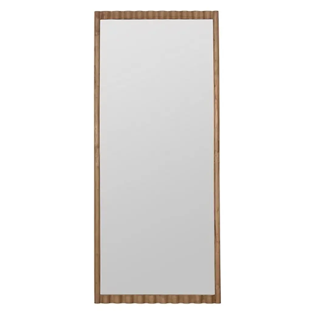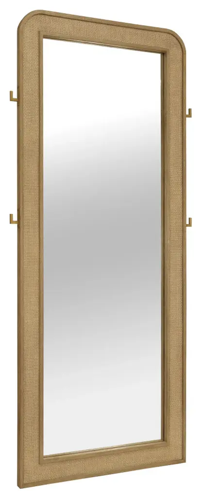 Elevate your bedroom or dressing area with this elegant full-length mirror, designed to bring both style and functionality to your space. The mirror features a sleek, rounded-edge frame finished in a sophisticated, textured material that adds a touch of warmth and refinement. Integrated hooks on the sides provide convenient storage for accessories, making it a versatile addition to your decor. Whether you"re checking your outfit from head to toe or simply adding a decorative element, this mirror enhances any room with its blend of practicality and chic design. Perfect for modern and transitional spaces, it''s a must-have for creating a polished look in your home. Features: Includes: One (1) floor mirror Full-length mirror in sand wash finish with sleek, rounded-edge frameRadio weave natural cane adds warmth and sophisticationIntegrated side hooks for convenient accessory storageThe sand wash finish harmonizes beautifully with the natural canePerfect for enhancing bedroom or dressing areasColor: BrownDimensions: Floor Mirror: Width: 33.75, Depth: 2.00, Height: 76.00, Weight: 48.32