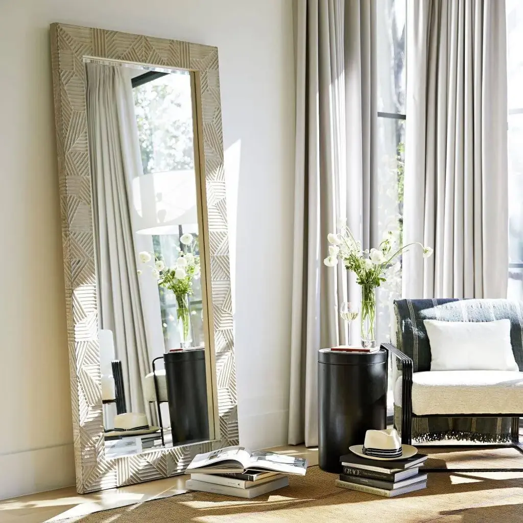 The Marsh Floor Mirror plays with elements that are recurrent in Beth Webb’s body of work-- texture tension and serene tones. The scale of this full-length carved wood mirror which was inspired by a contemporary Italian woodworker carries gravitas as though it is a piece of sculpture in itself. The deeply grooved patterns in the wood juxtapose the slick mirror. Suitable for hanging or leaning on a wall it could equally be hinged and transformed into a folding screen. Finish will vary.
