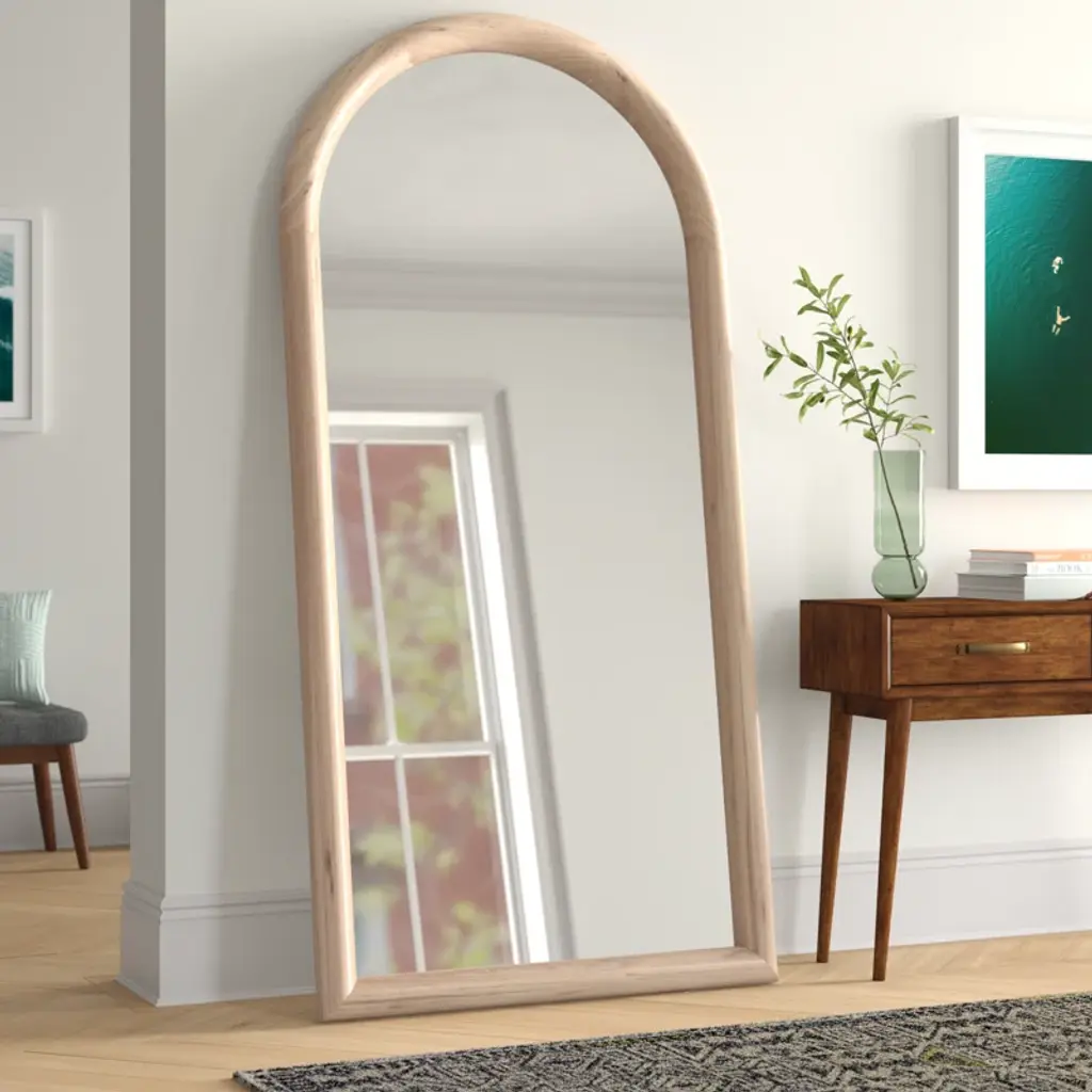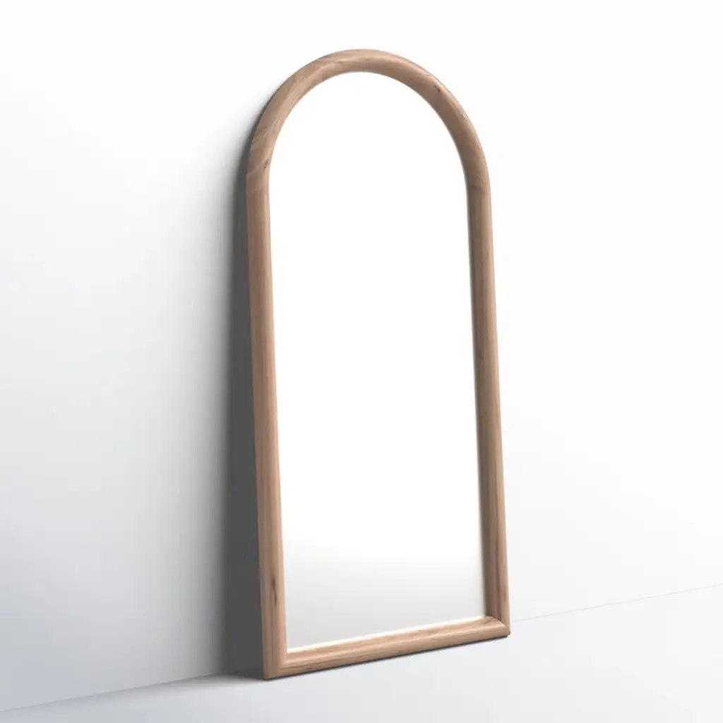 Solid acacia is smoked, shaped, and smoothed to bring a vintage art deco-inspired frame to this mirror.
