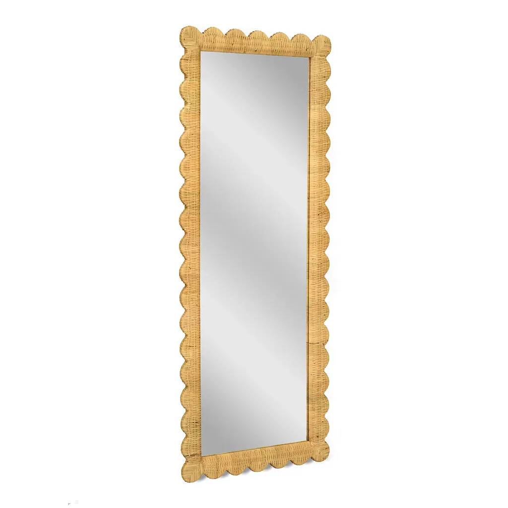 The Bama Natural Rattan Mirrors bring a touch of whimsy and craftsmanship with their scalloped wavy frames hand-woven from locally harvested rattan. Available in two bold silhouettes, a tall rectangular floor mirror and a grand arched jumbo version, they add playful texture while anchoring a room with their substantial high-quality build. Perfect for brightening entryways, bedrooms, or living spaces with coastal-inspired charm.