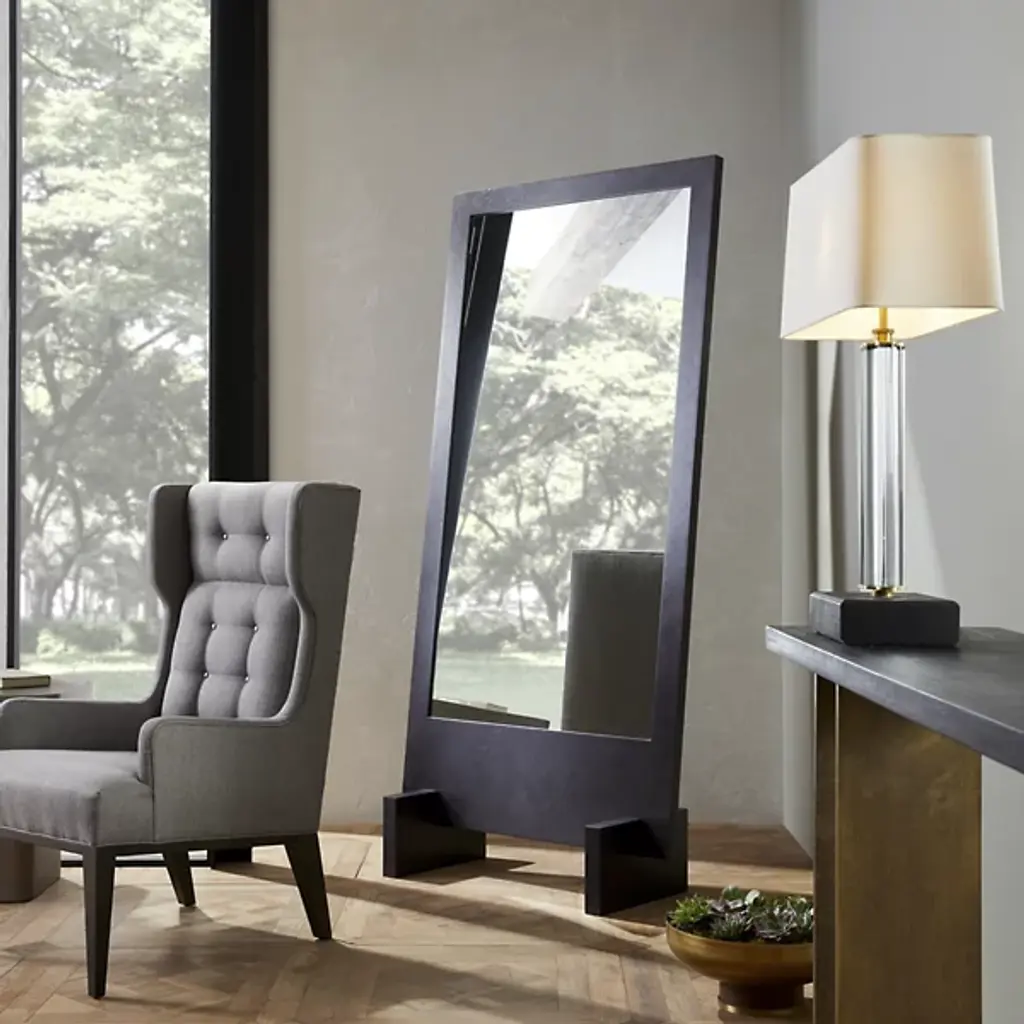 Stylish and contemporary. The Banfi Floor Mirror is presented by Arteriors, a brand that curates and responsibly sources home furnishings that seamlessly blend the line between fine art and interior design. An ebony oak wood veneer adds a touch of luxe to the framing of this full-body mirror. It’s a rustic modern inspired piece that will offer ultimate practicality in application without sacrificing aesthetics or elegance. It would look great in a fitting room, bedroom, and more.