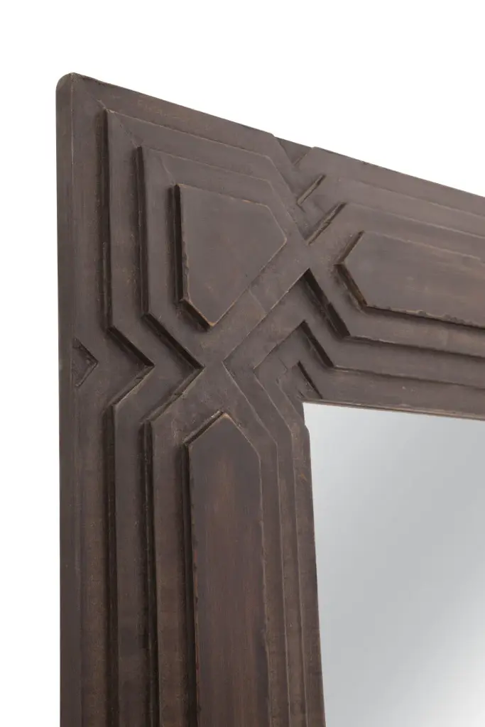 The Bazar floor mirror boasts a rectangular shape, accentuated by a dark brown wooden frame with a black wash finish, showcasing a raised geometric detail. This rustic-inspired mirror adds depth and character to any space, offering both functionality and style. With its timeless design and quality craftsmanship, the Bazar floor mirror is a versatile addition to your home decor, effortlessly complementing a range of interior styles.Features:Rustic design with boho aestheticsRectangular shape for timeless appealRaised geometric detailing for styleNatural wood adds a touch of warmth to any spaceNo assembly required; just attach to wall with mounting kit for added security.For over a century, Bassett Mirror has been synonymous with style and quality, transforming homes with its sophisticated and timeless designs. With a wide-ranging collection of furniture, lighting, mirrors, and art, Bassett Mirror seamlessly blends modern style with classic appeal. From rustic modern to luxe glam, each piece is thoughtfully crafted to inspire and elevate any space. Committed to exceptional value and customer care, Bassett Mirror makes it easy for homeowners to create beautiful, personalized interiors with confidence.