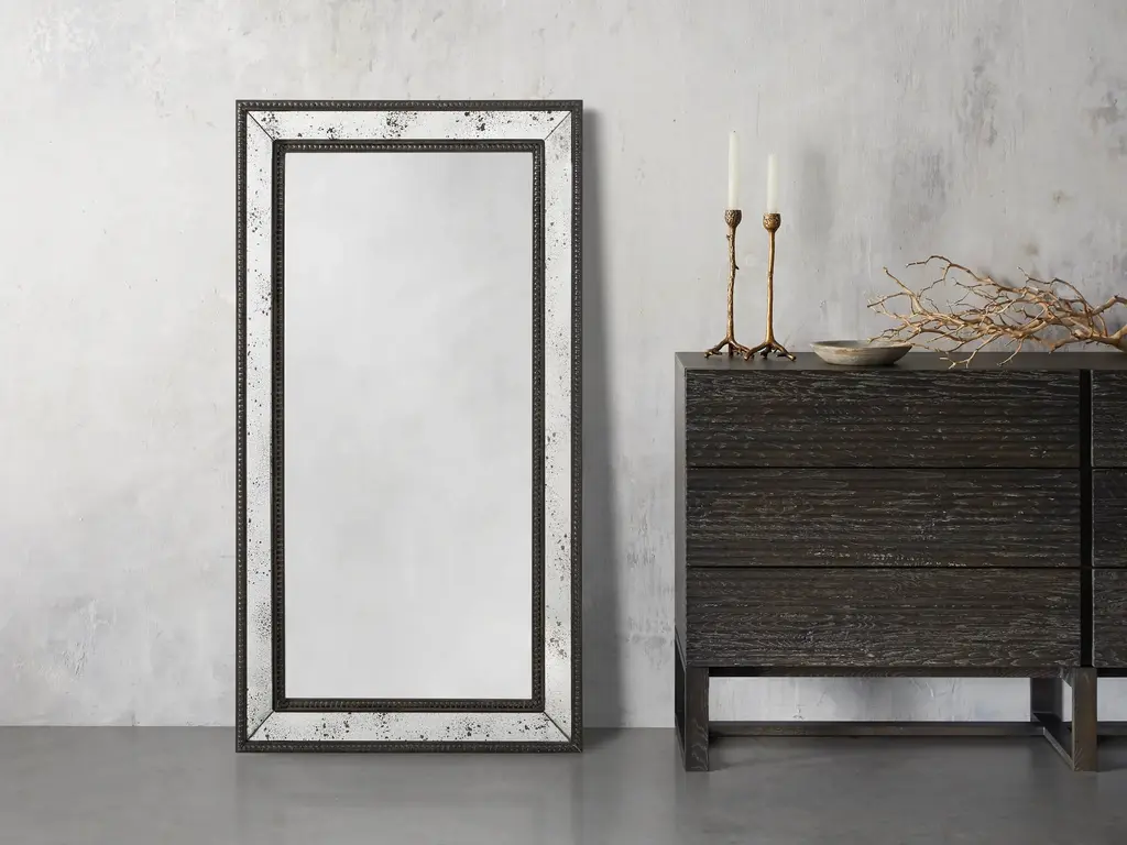 Bassett Furnitures Beaded Floor Mirror adds a bold, commanding presence to any classic, traditional or transitional space. This antiqued, silver leaf metallic moulding finish, rectangle mirror features beveled edges and a beaded, detailed frame. Wall anchor provided. Sure to be the focal point of your room.