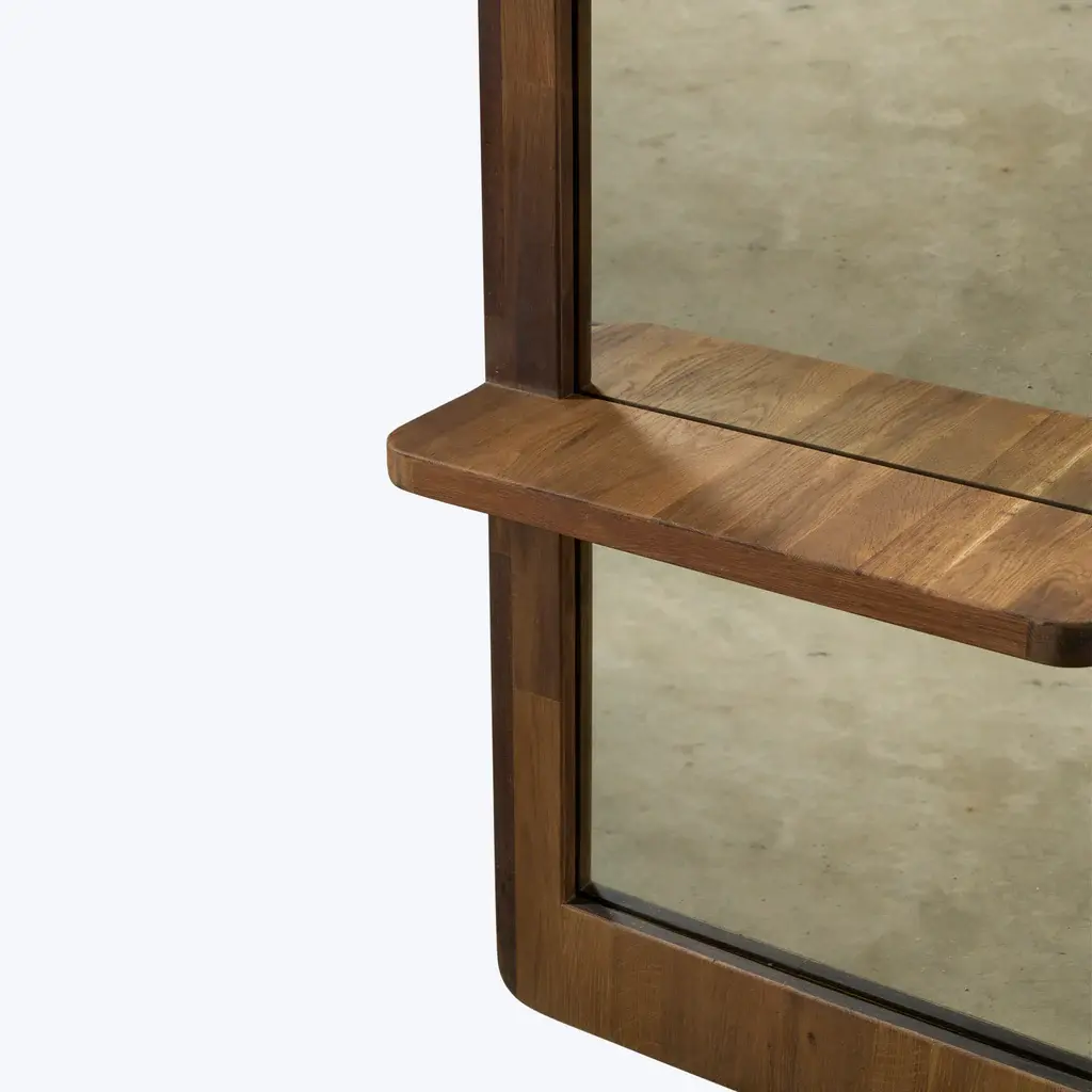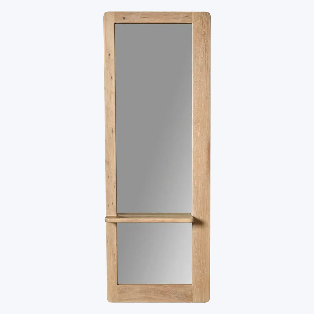 Add a touch of elegance and functionality to your space with the Bello Mirror. This tall mirror comes with a built-in shelf, making it perfect for vanity purposes and providing a convenient space to place your daily essentials. Crafted from reclaimed wine-infused oak, this mirror is sustainably designed and features natural stains from red and white wine, adding a unique touch to any space. Whether placed in a hallway, bedroom, bathroom, or elsewhere, the Bello Mirror is sure to look timeless while providing a convenient place for storing essential items.