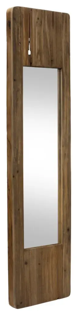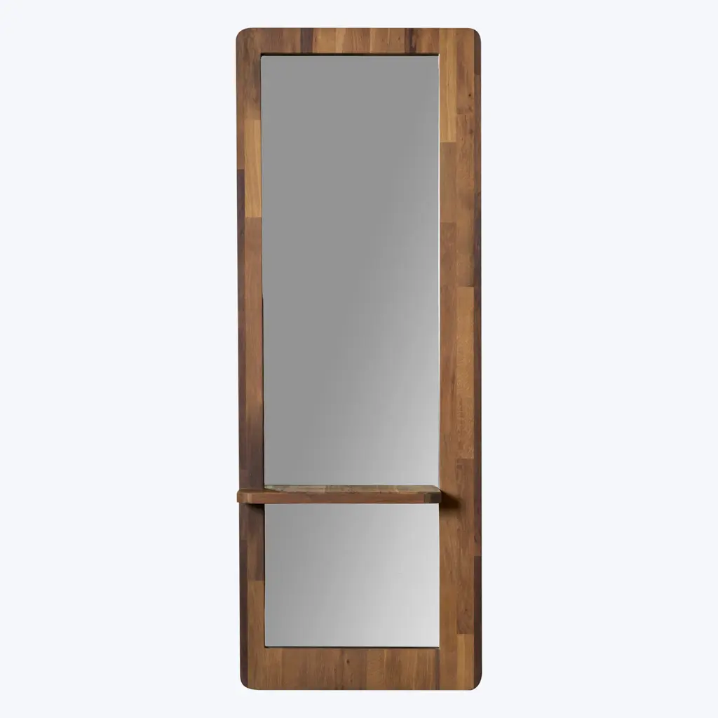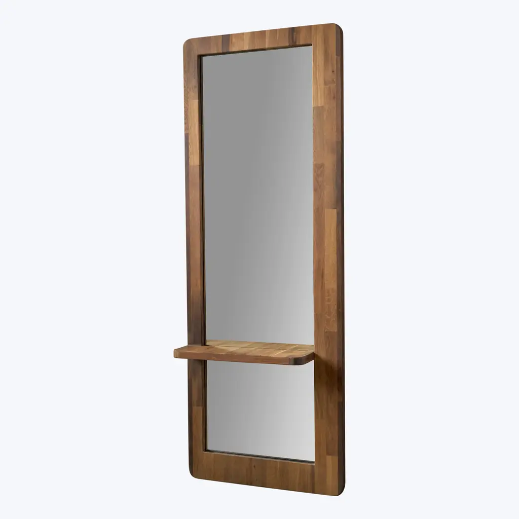 Add a touch of elegance and functionality to your space with the Bello Mirror. This tall mirror comes with a built-in shelf, making it perfect for vanity purposes and providing a convenient space to place your daily essentials. Crafted from reclaimed wine-infused oak, this mirror is sustainably designed and features natural stains from red and white wine, adding a unique touch to any space. Whether placed in a hallway, bedroom, bathroom, or elsewhere, the Bello Mirror is sure to look timeless while providing a convenient place for storing essential items.