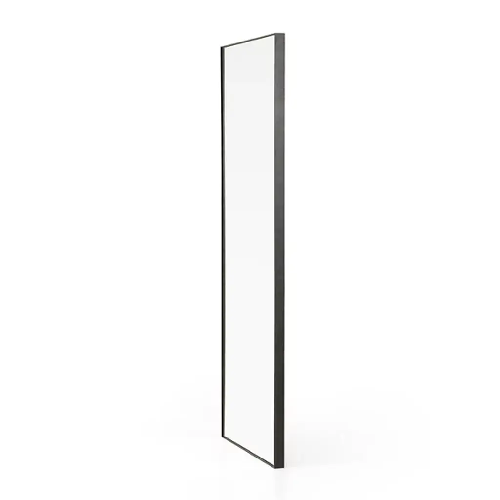 The Bellvue Floor Mirror from Four Hands epitomizes grace with an edge of modernity. Its rectangular iron frame is finished with a tasteful texture and allows the clean mirrored glass to take center stage, opening up any space with its reflective charm. It is designed for easy leaning or more secure placement and has a mounting hook for flexible positioning. The mirror delights with a sleek design expressing smooth contemporary style.