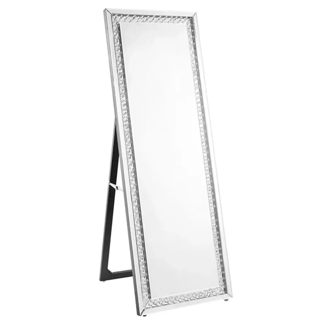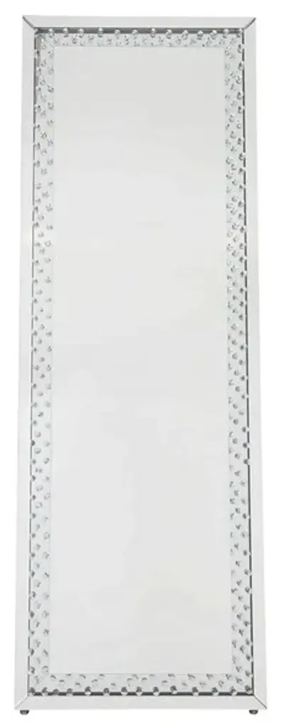 Increasing depth and brightness, this Accent Standing Mirror will be a dazzling statement piece for you to display anywhere in your home. Showcasing a rectangular silhouette, this standing mirror features a clear finish and round crystal inserts. This standing mirror will be a stunning addition to your home decor and its space-efficient design is ideal for small spaces, such as a bedroom, bath, or foyer.