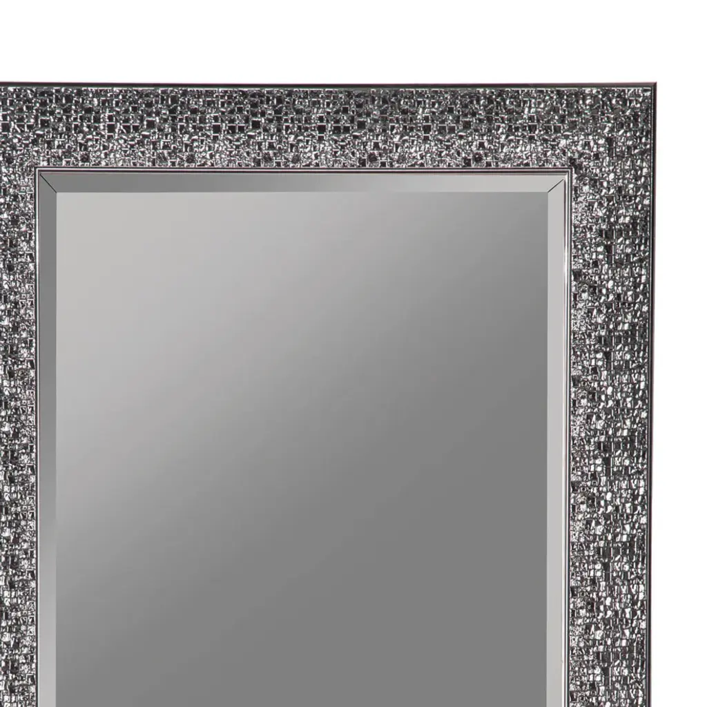 More than just a site to check your look, this Accent Floor Mirror will surely add style to your space. It features a rectangular frame with a clear beveled edged mirror and mosaic pattern in a glittering finish that creates a bold, yet textured look. Add this contemporary yet beautifully crafted mirror to expand the perception of space within your bedroom.