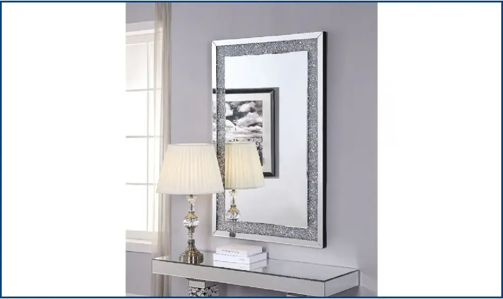 Grandeur meets sophistication with this contemporary style inspired Floor Mirror. Featuring faux diamond inlays along with LED trim details for a brighter appeal, it is encased with a rectangular MDF frame.