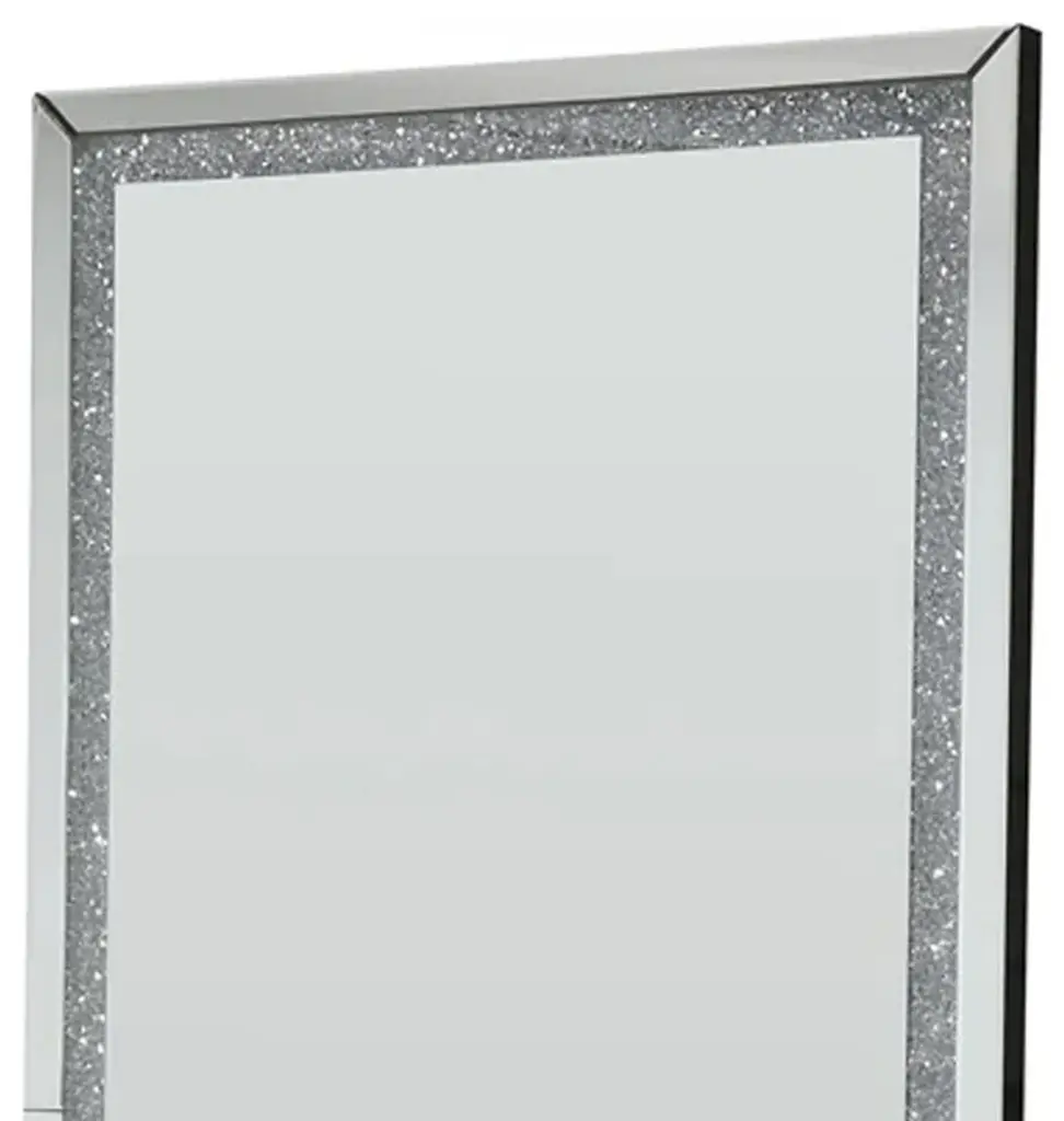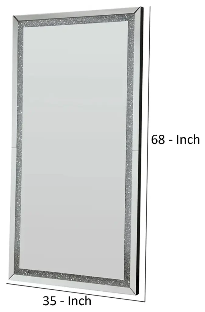 Benzara Bm268947 Floor Mirror With Faux Diamond Inlays And Led Trim, Silver