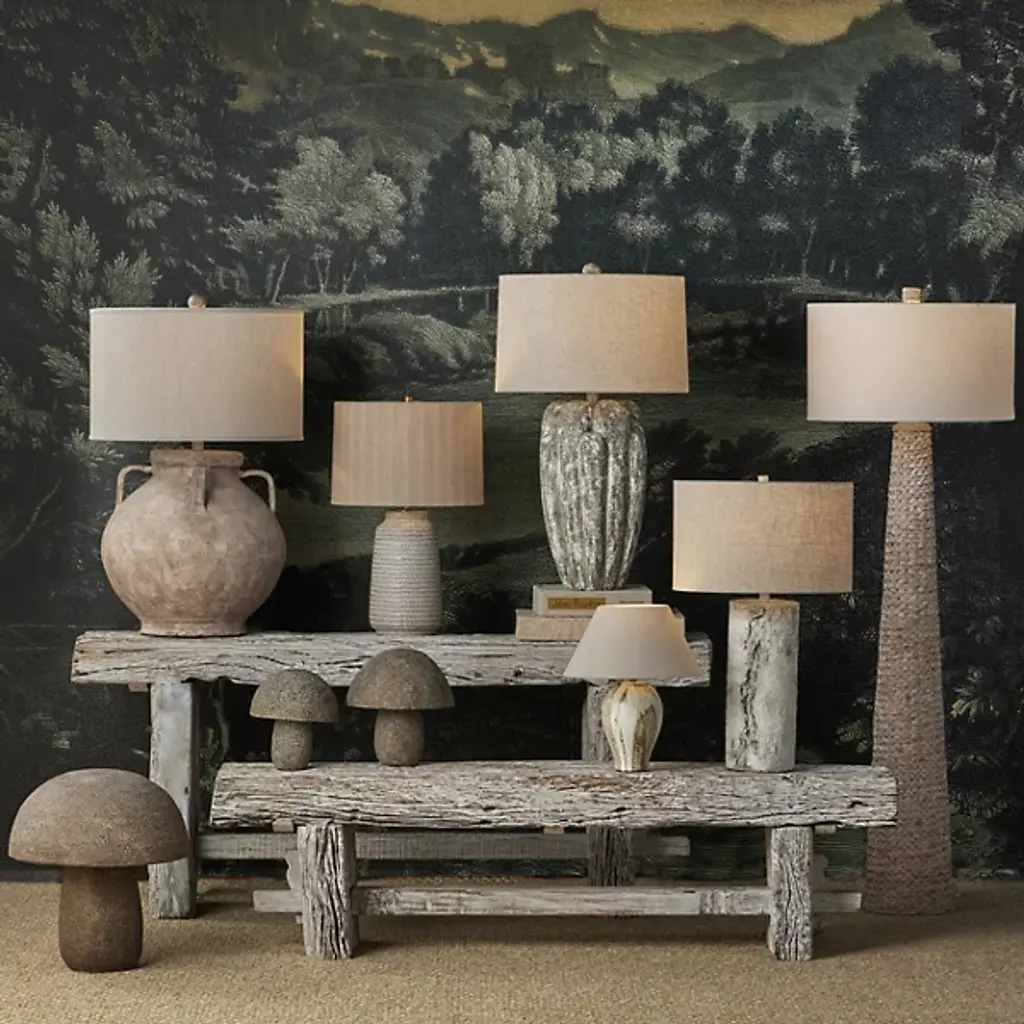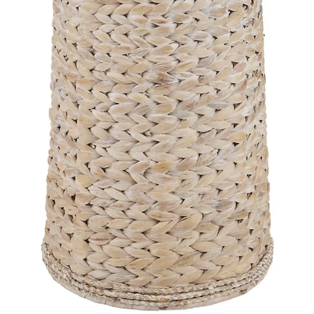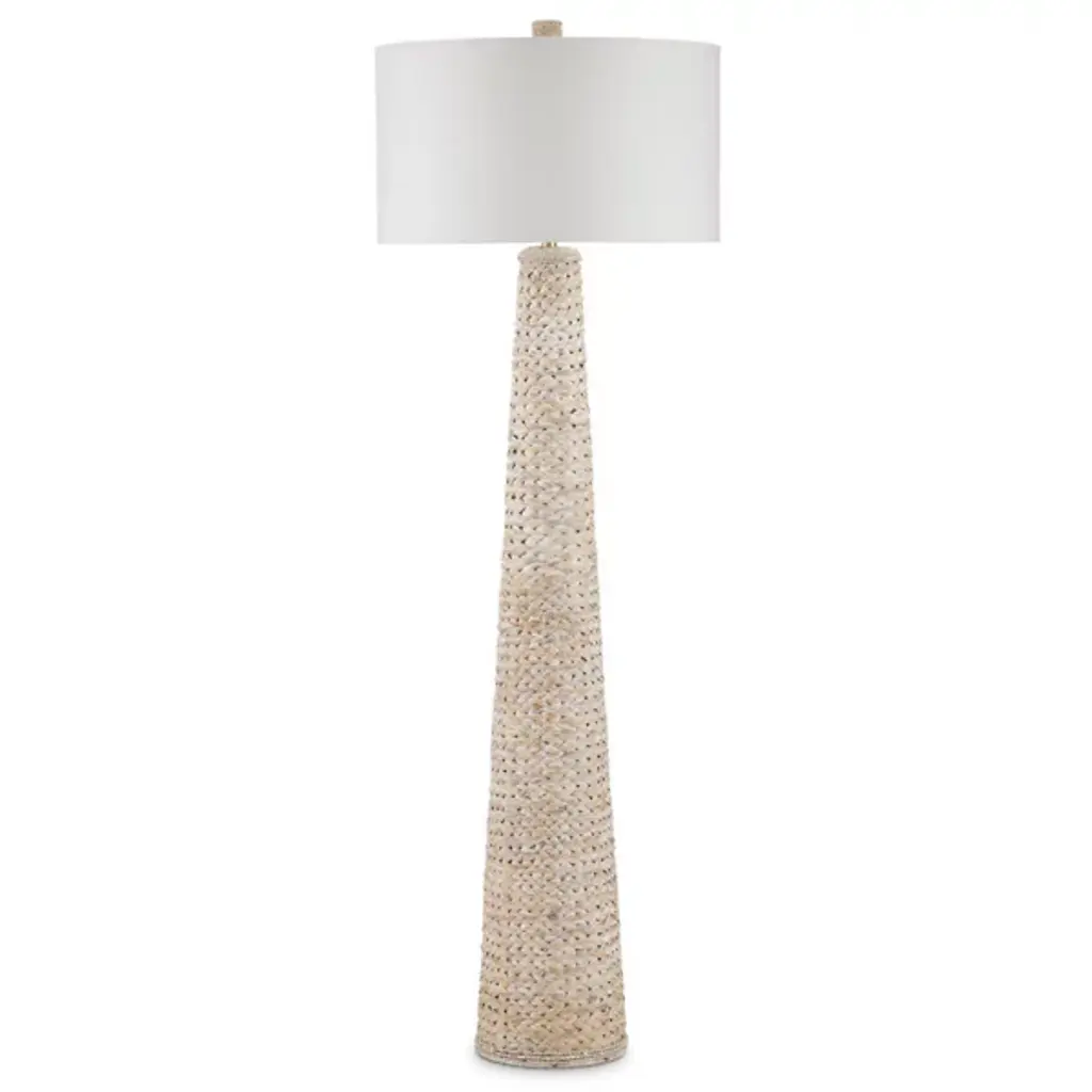 The Birdsong Floor Lamp from Currey & Company exhibits masterful water hyacinth weaving techniques that require exceptional skill and time to achieve. Each knot and twist in the pattern demonstrates the artisan's dedication to maintaining consistent texture throughout the tall base. The woven material creates a naturally varied surface that adds depth to the overall form. A linen drum shade tops the substantial base, complementing its organic texture. The finial mirrors the base's craftsmanship, unifying the design from top to bottom.