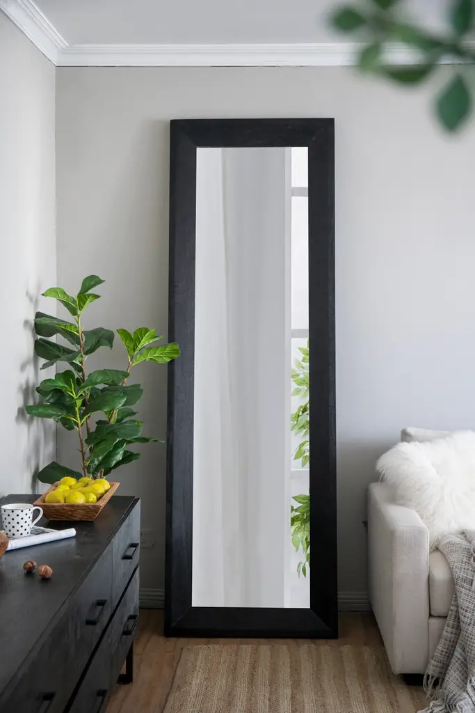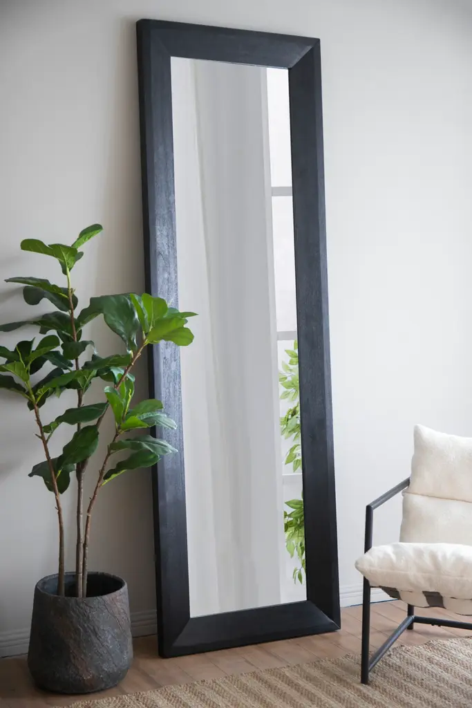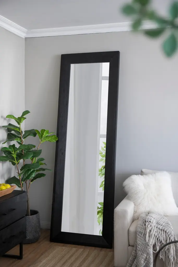 Featuring a sleek rectangular frame coated in a black finish, this full length mirror offers an unmatched elegance to your space. Standing tall at 90, it is the very definition of a statement piece, no matter where it is placed in your home or office. The neutral color also allows the mirror to effortlessly slot into almost all interior styles and decors, making for a hassle-free display.