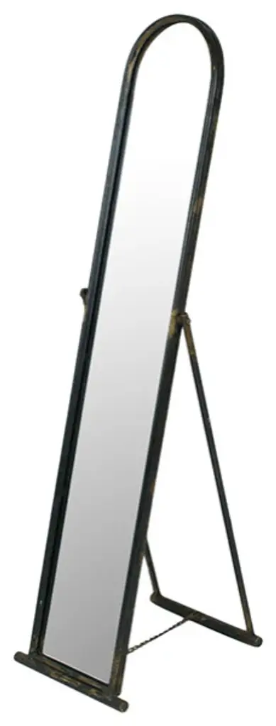 This mirror offers a full length view perfect for you bedroom or entryway. Arch design will compliment any decor.- Mirror measures 13" x 17" x 55.5"H- Hand finished metal- Freestanding mirror with sturdy metal stand.- Heirloom Quality - Expertly hand crafted and hand finished. Due to the hand crafted nature of this piece, each piece may have subtle differences.