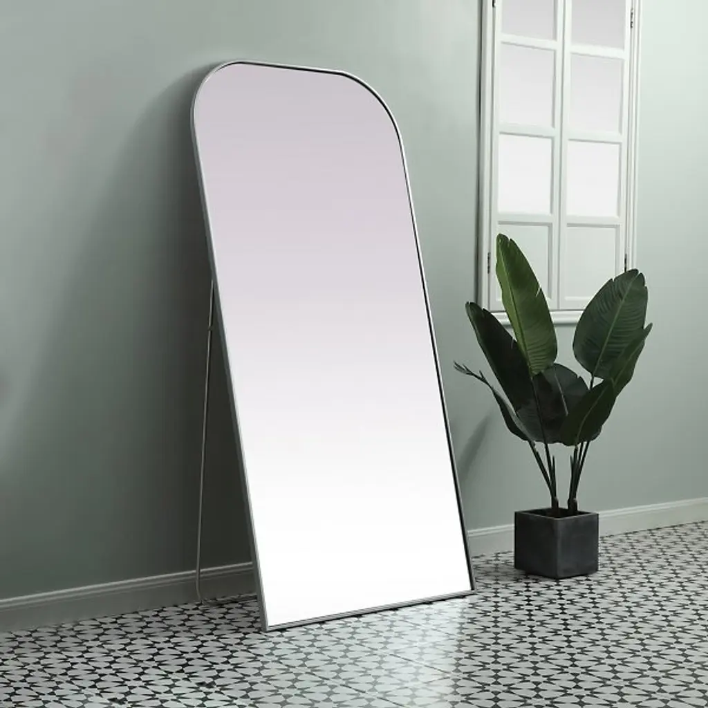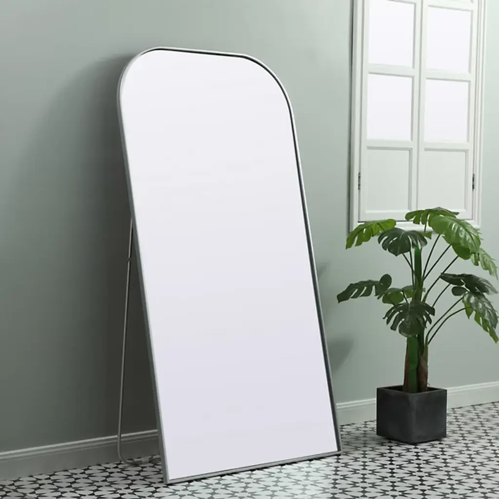 The Blaire Floor Mirror by Elegant Lighting provides a refined touch to any space with its rounded arch top and slim iron frame, offering a classic open charm. Great for full-length viewing or styling your everyday outfits, this versatile mirror can be leaned against a wall for an elegant, relaxed look or mounted to a wall to save space.