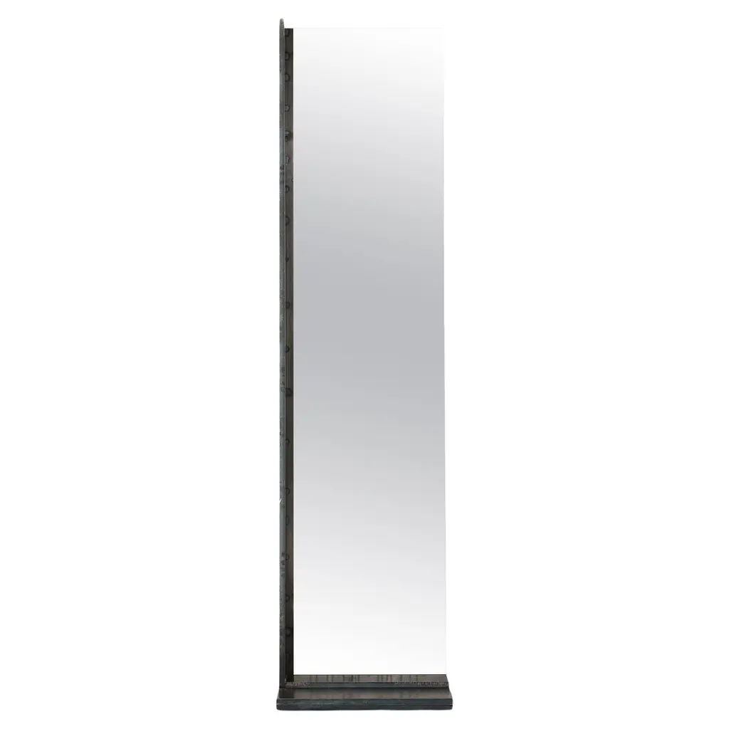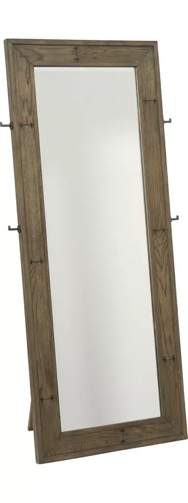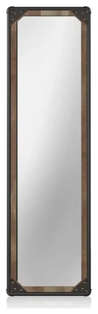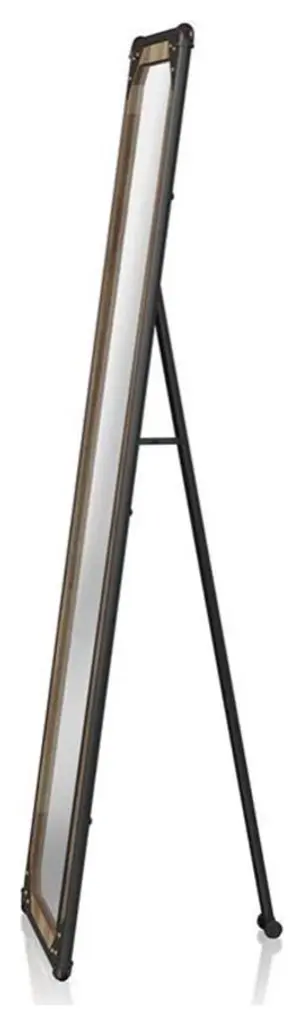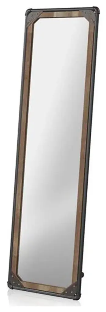 Masculine with an industrial vibe, this free glass standing mirror from the collection features a natural wood and sand black pipe-like frame. Perfect for a contemporary style bedroom or spacious loft space, this mirror also features fine details such as a brushed metal corner accents with metallic nail heads.Features: • Includes: One (1) Standing Mirror • Style: Transitional • Finish: Sand Black • Materials: Steel, MDF, Mirror • Pipe-like border • Brushed metal frame • Accent corner pieces • Shiny metallic nail heads • Kick stand rod • Easy to follow step by step assembly guide includedSpecifications: • Product Dimensions: 20"W x 18.75"D x 68.88"H • Product Weight: 48 lbs • Assembly Required: Yes